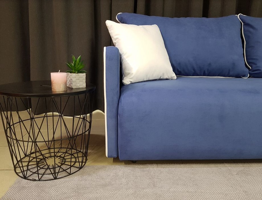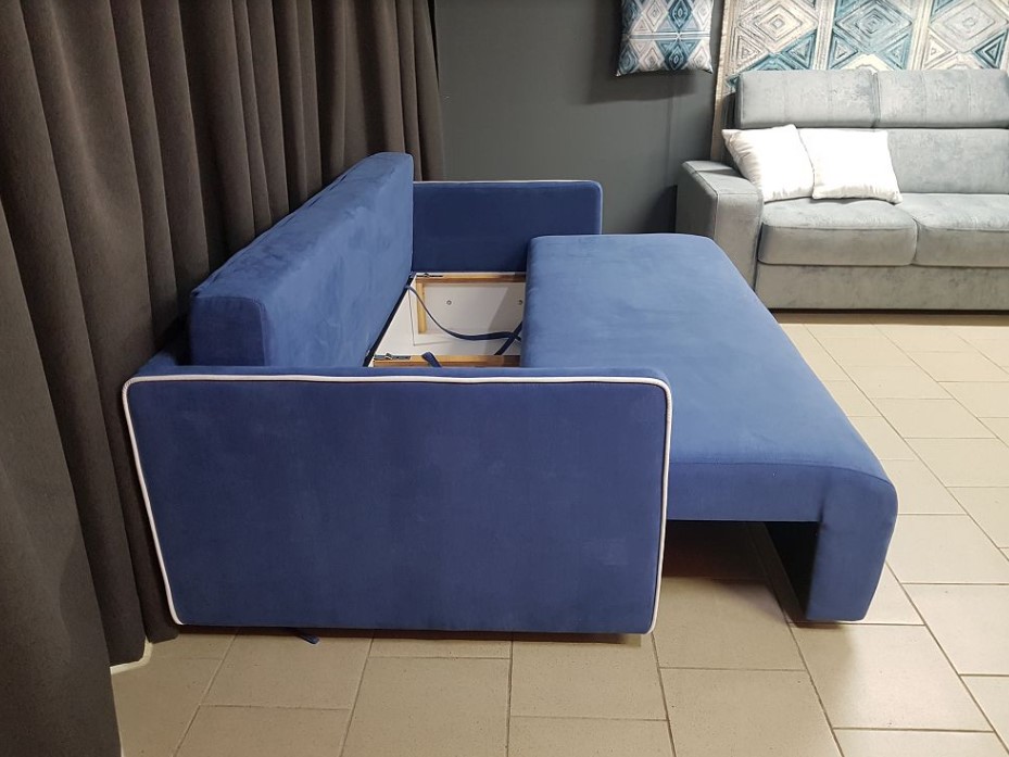 Мягкий диван малогабаритных размеров. Оснащен нишей для хранения.