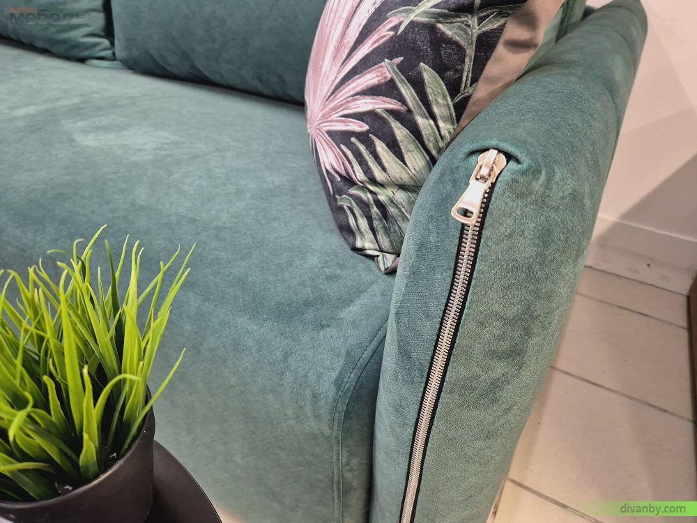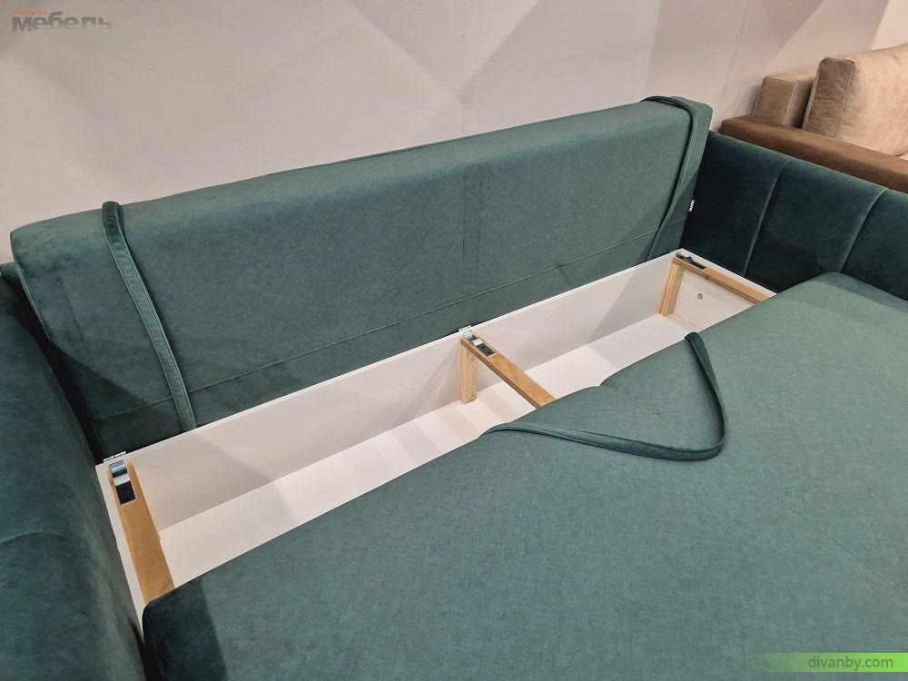 Главная функциональная особенность дивана - наличие в стандартной комплектации удобного Топпера (наматрасника). Он пришит к тыльной стороне спинки дивана и не заметен в сложенном виде. При трансформации дивана в кровать, топпер фиксируется угловыми креплениями, защищает обивку дивана от преждевременного износа и придает спальному месту особый комфорт.