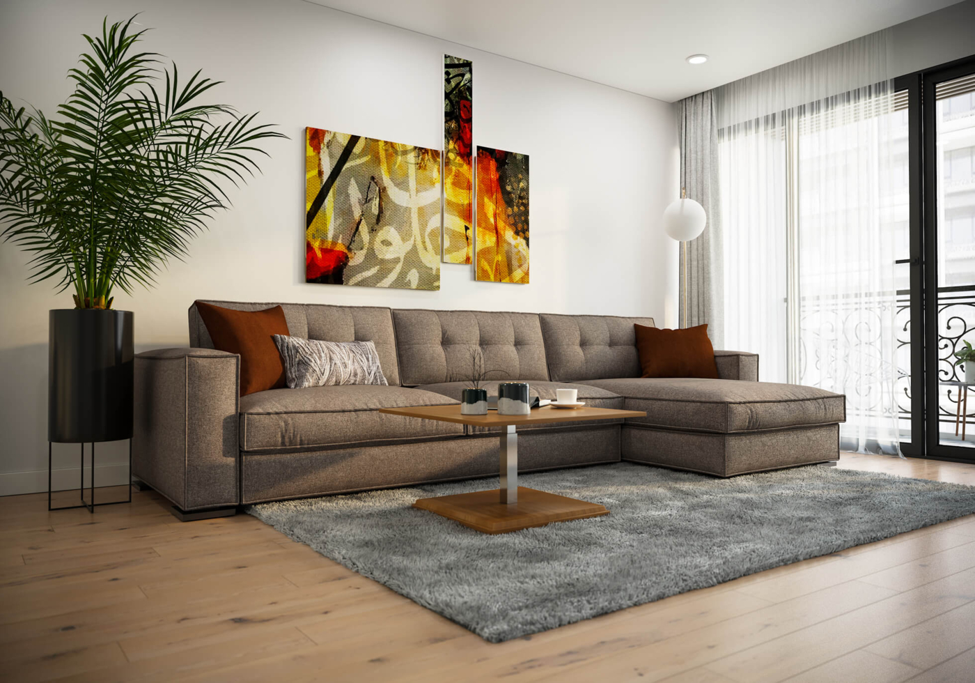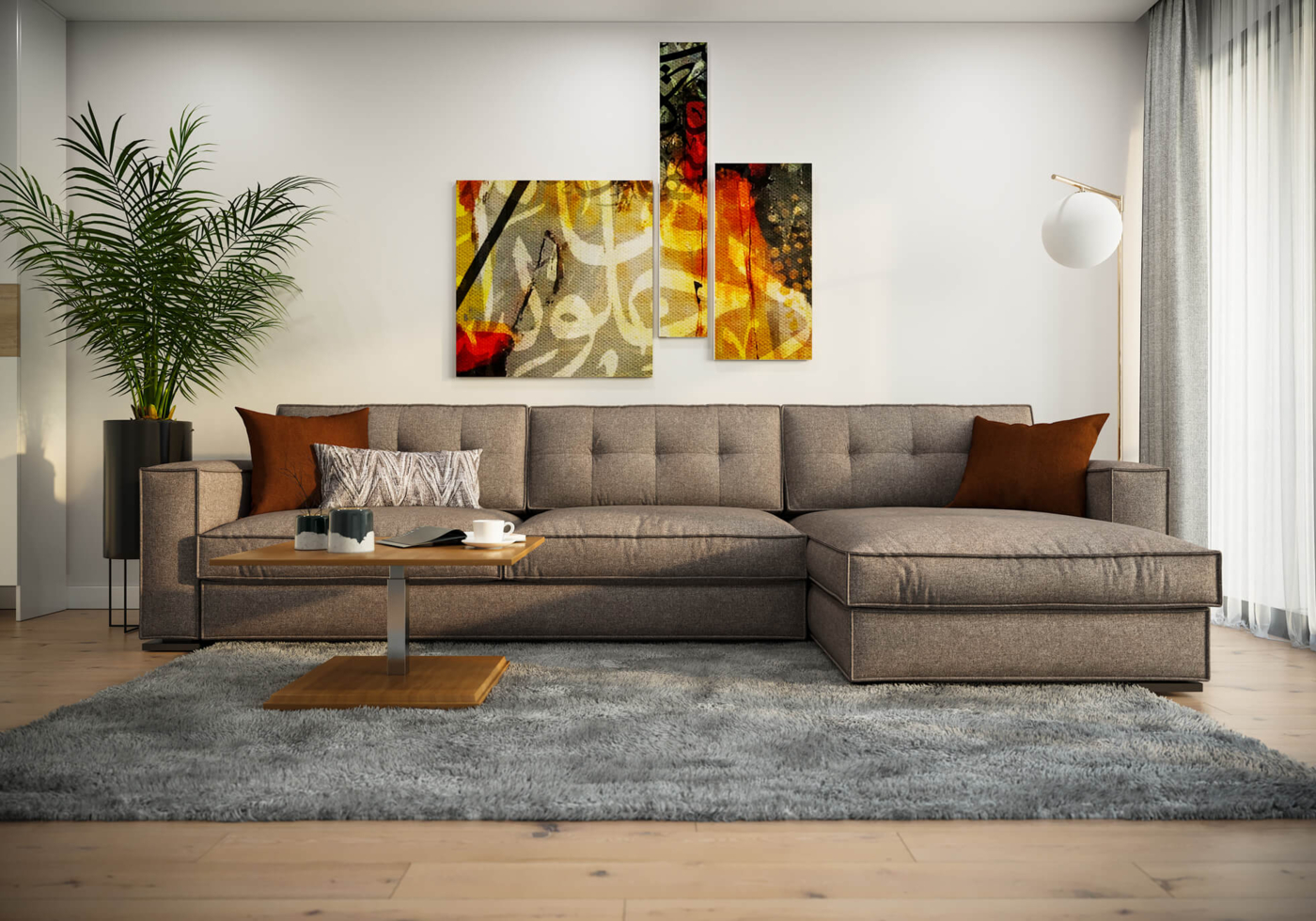 Угловой диван с декоративной стяжкой