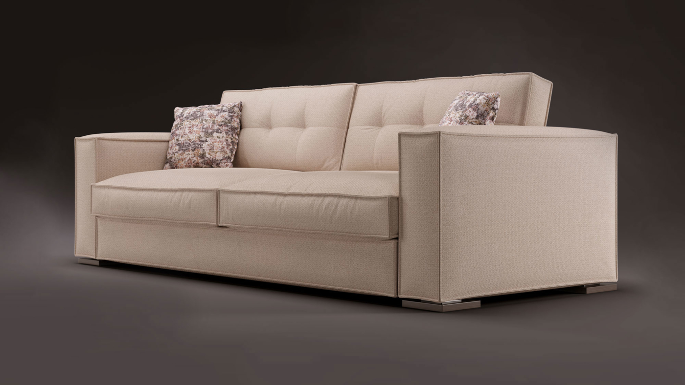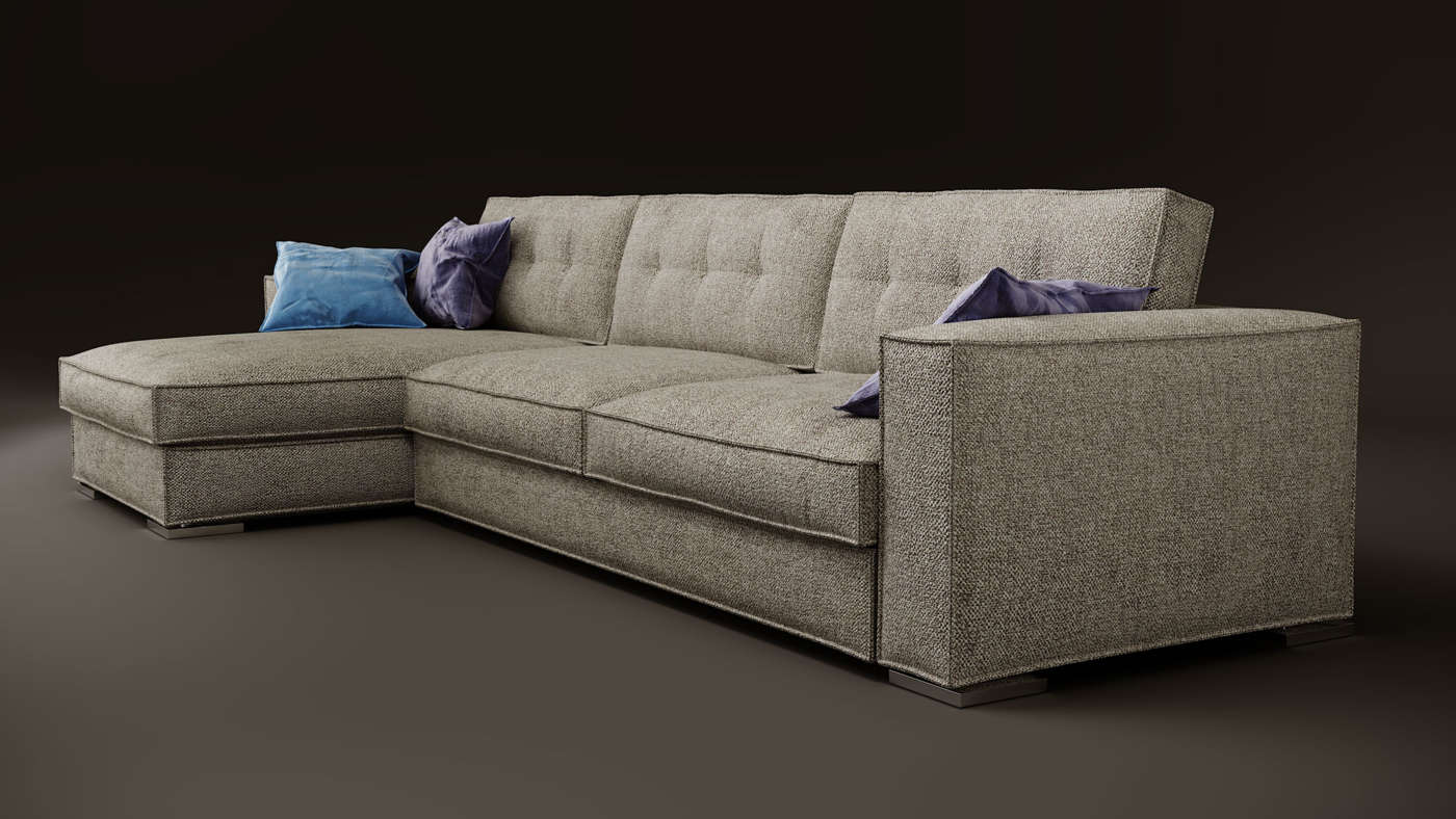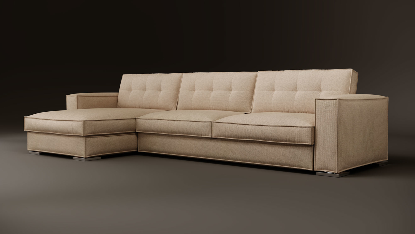 код 110654Доступен в двух комплектациях: прямой, с оттоманкой. Пухлые подушки спинки и сидения. Декоративная окантовка.