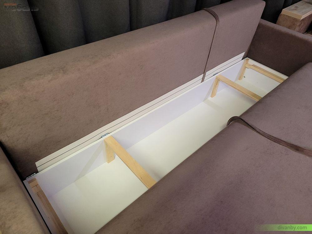 Модель оснащена вместительной нишей для белья. Настил: Блок независимых пружин. Ширина боковины 10 или 20 см. В широкий подлокотник можно встроить функциональную книжную полку и декорировать его удобными ламинированными накладками (платная опция).