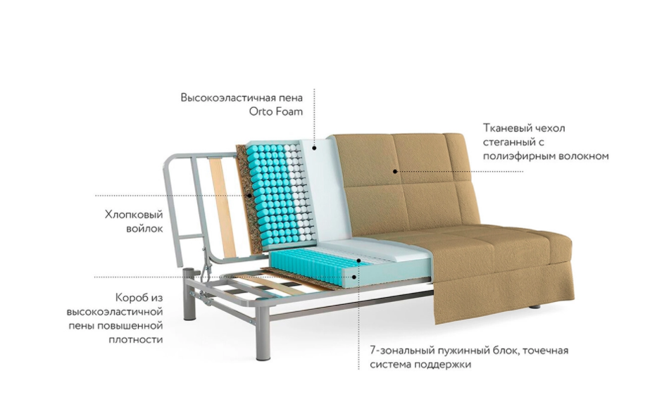 Компактный анатомический диван с надежным механизмом трансформации "Клик-кляк". Глубокая посадка позволит днем уютно устроиться с книгой или планшетом, а ночью высокий 7-ми зональный матрас физиологически правильно поддержит позвоночник. Модель без подлокотников позволяет экономить пространство в комнате, не экономя на комфортном сне!