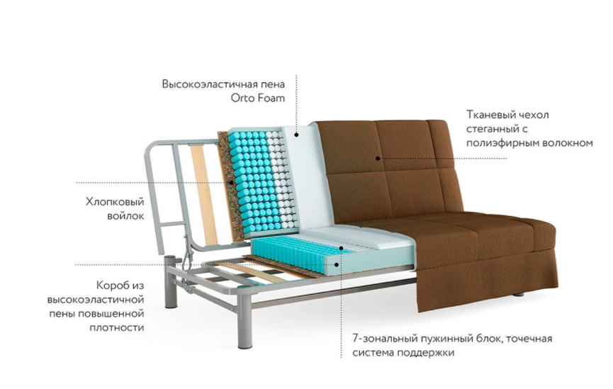 код 120740Компактный анатомический диван с надежным механизмом трансформации "Клик-кляк".