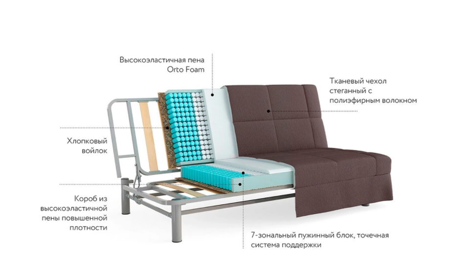 Компактный анатомический диван с надежным механизмом трансформации "Клик-кляк". Глубокая посадка позволит днем уютно устроиться с книгой или планшетом, а ночью высокий 7-ми зональный матрас физиологически правильно поддержит позвоночник. Модель без подлокотников позволяет экономить пространство в комнате, не экономя на комфортном сне!