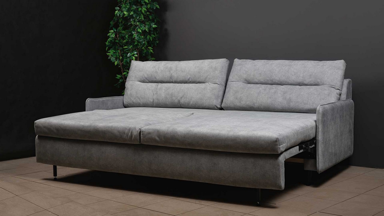 - Современный механизм трансформации «пума» раскрывается над поверхностью пола. Это позволяет укладывать рядом с диваном любой тип напольного покрытия, включая ковры с длинным ворсом. Размер спального места 140 х 200 см