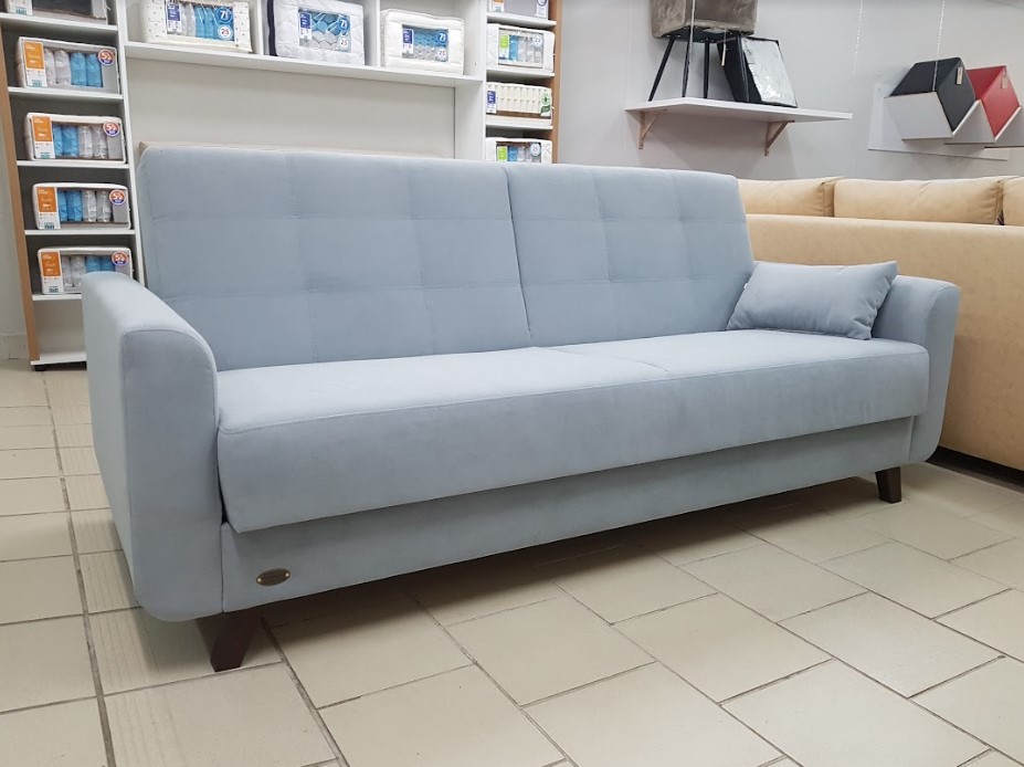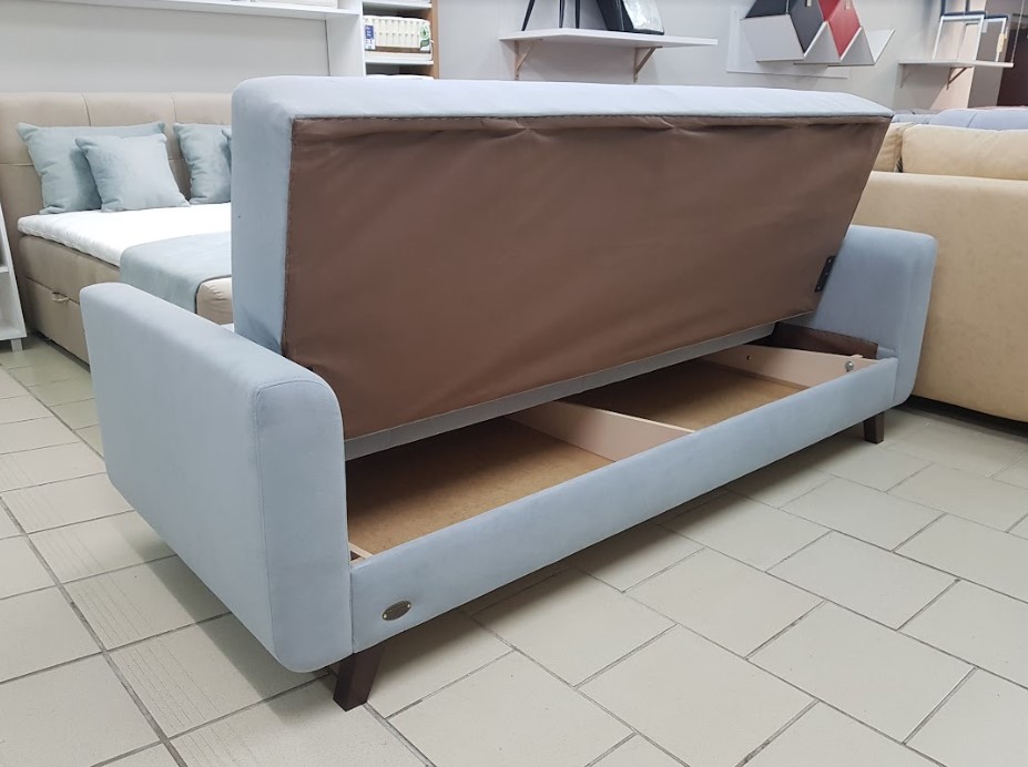 Трехместный прямой диван с механизмом трансформации и ящиком для белья.