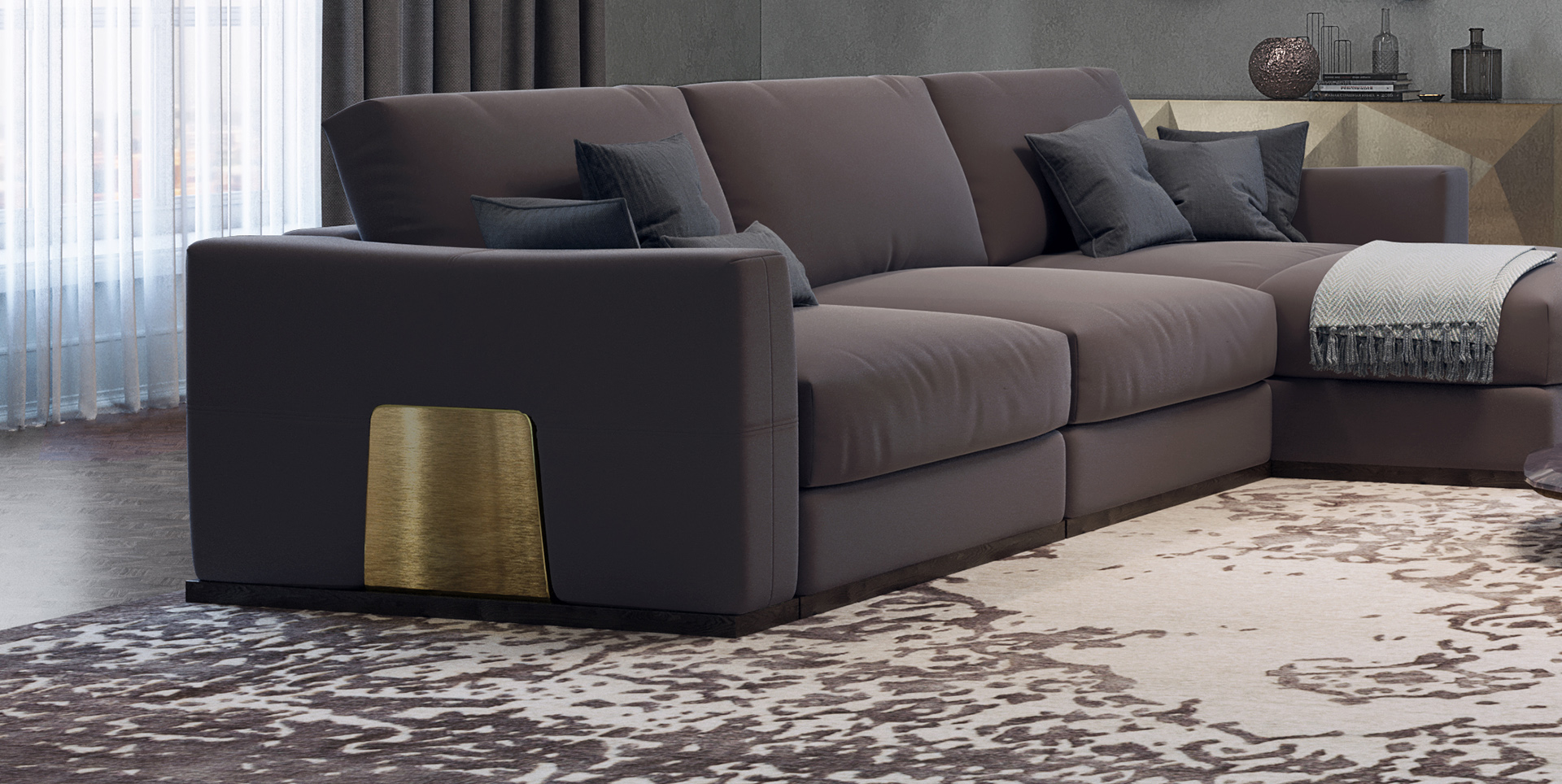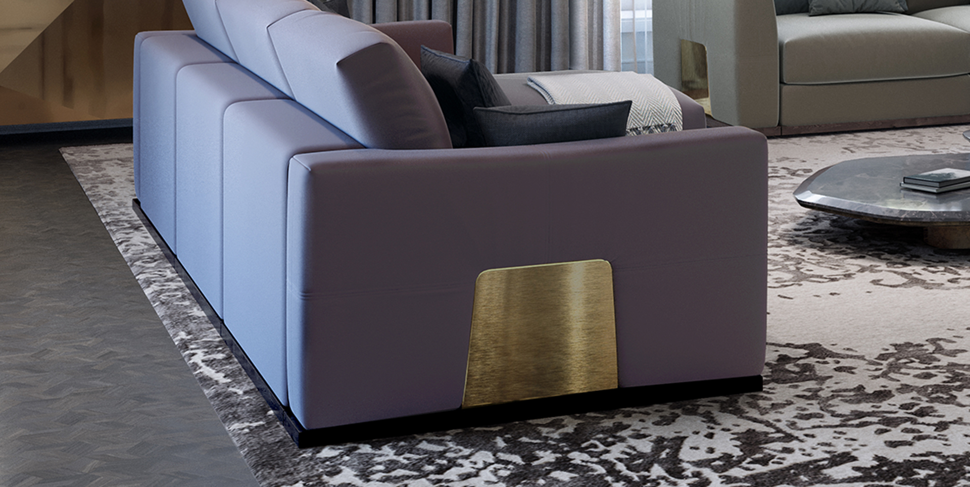 Просторные сиденья и большие мягкие подушки дивана Ontario-Compact гарантируют несравненный комфорт отдыха. Увеличенные по высоте, прямые мягкие боковины декорированы стильными металлическими вставками в цвете "золото" в виде пластин, которые сразу обращают на себя внимание. Диван установлен на деревянном основании, декорированном шпоном.