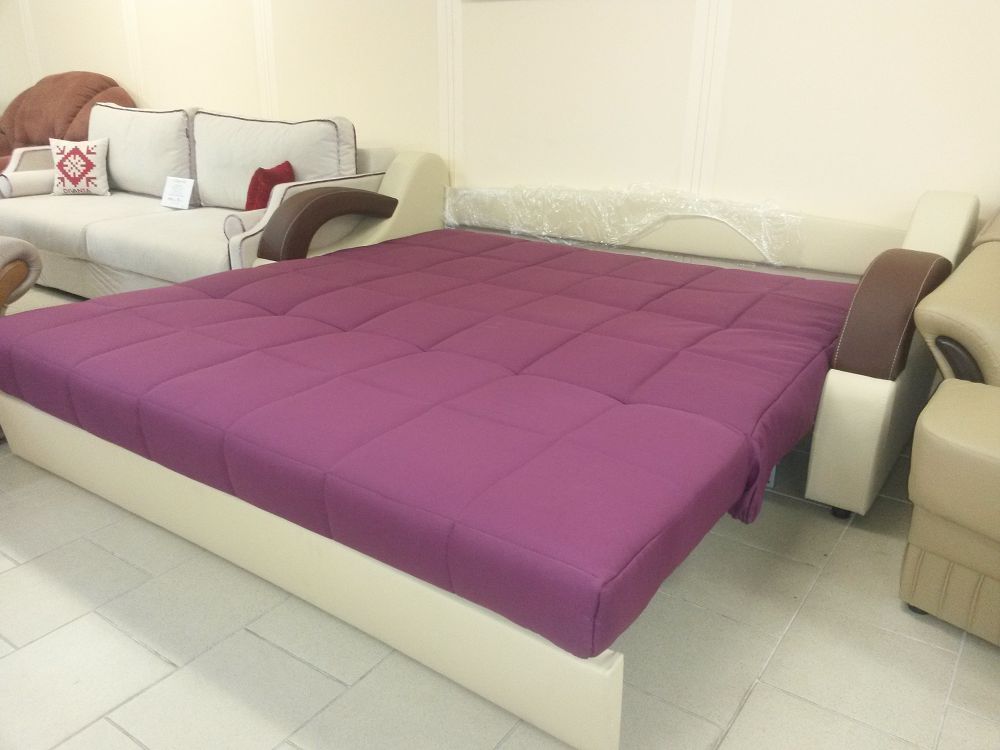 - Разложенный диван образует ровное большое спальное место (без стыков и перепадов);