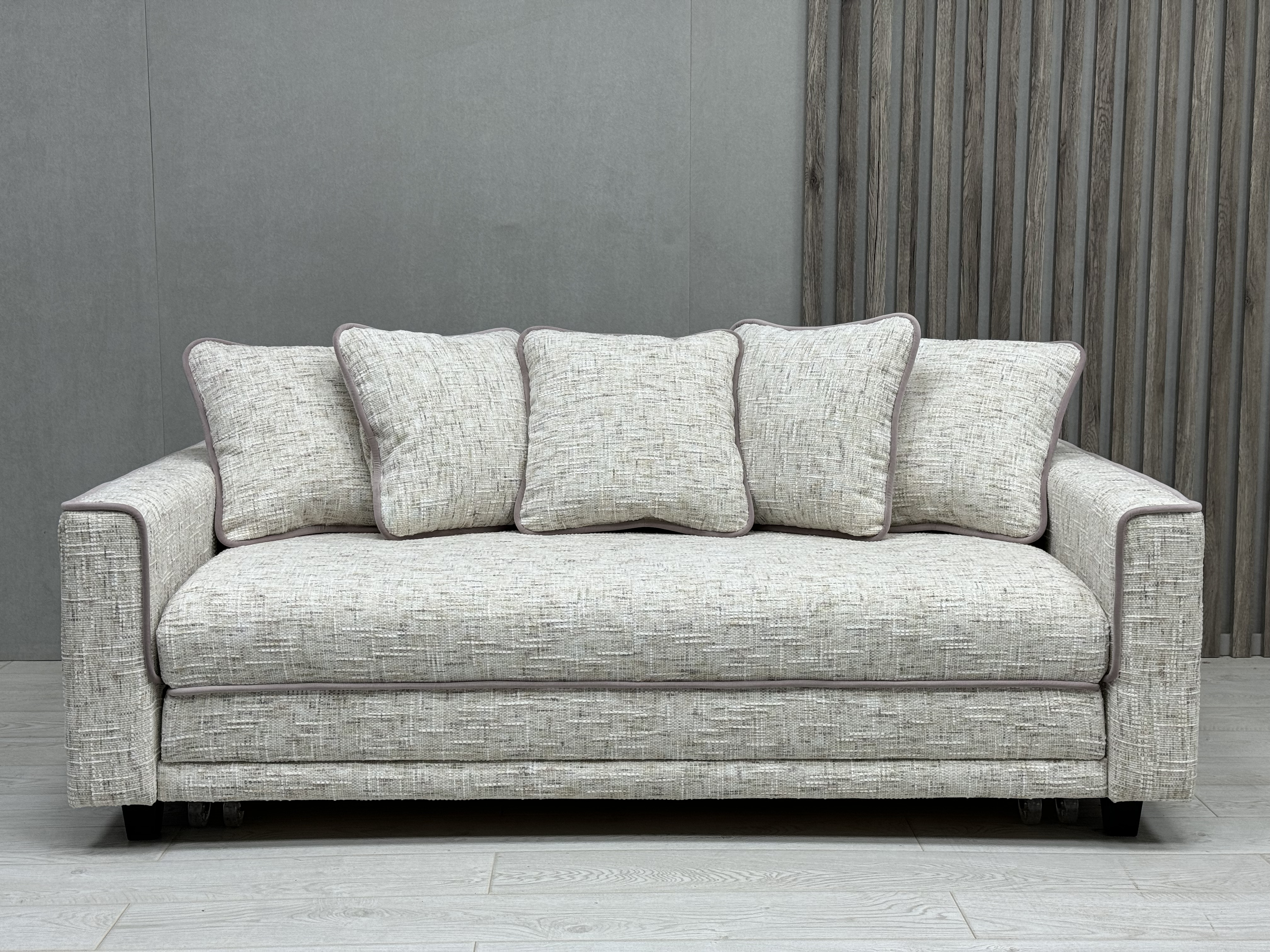 Удобный и функциональный диван светло-коричневого цвета.