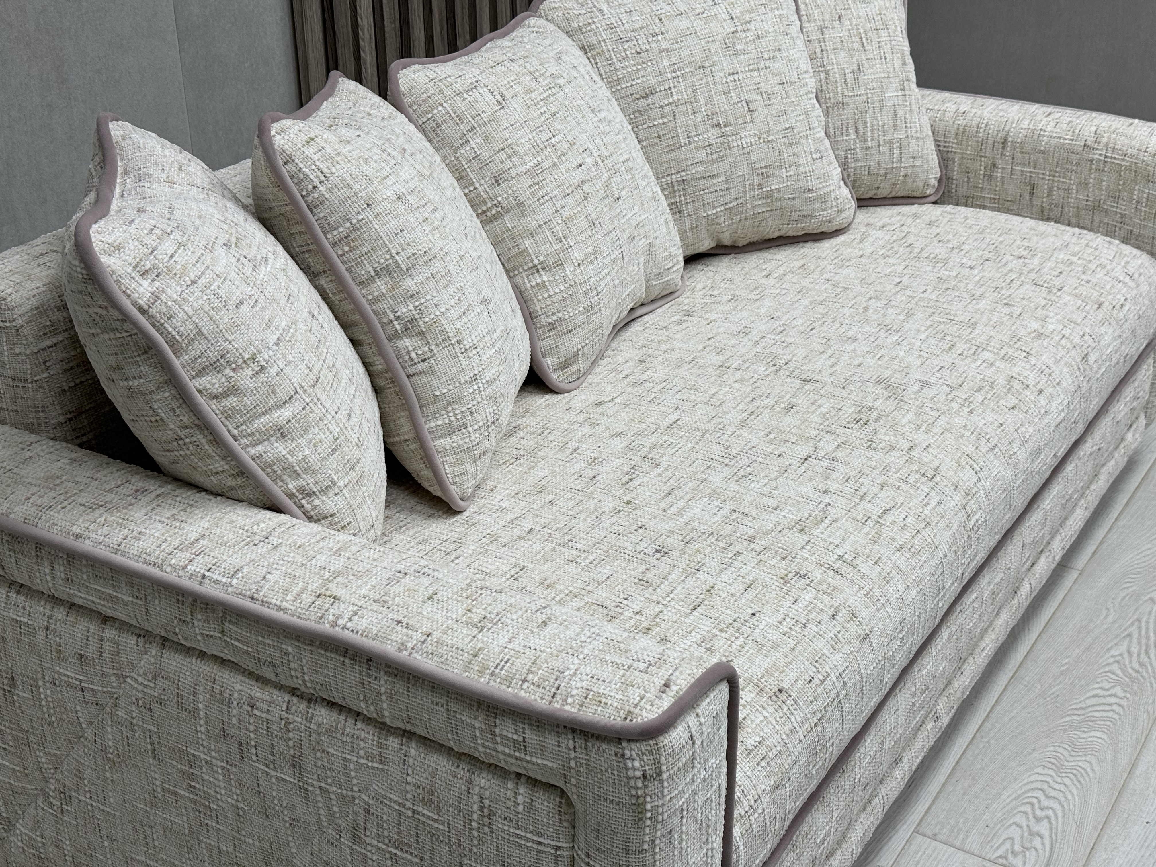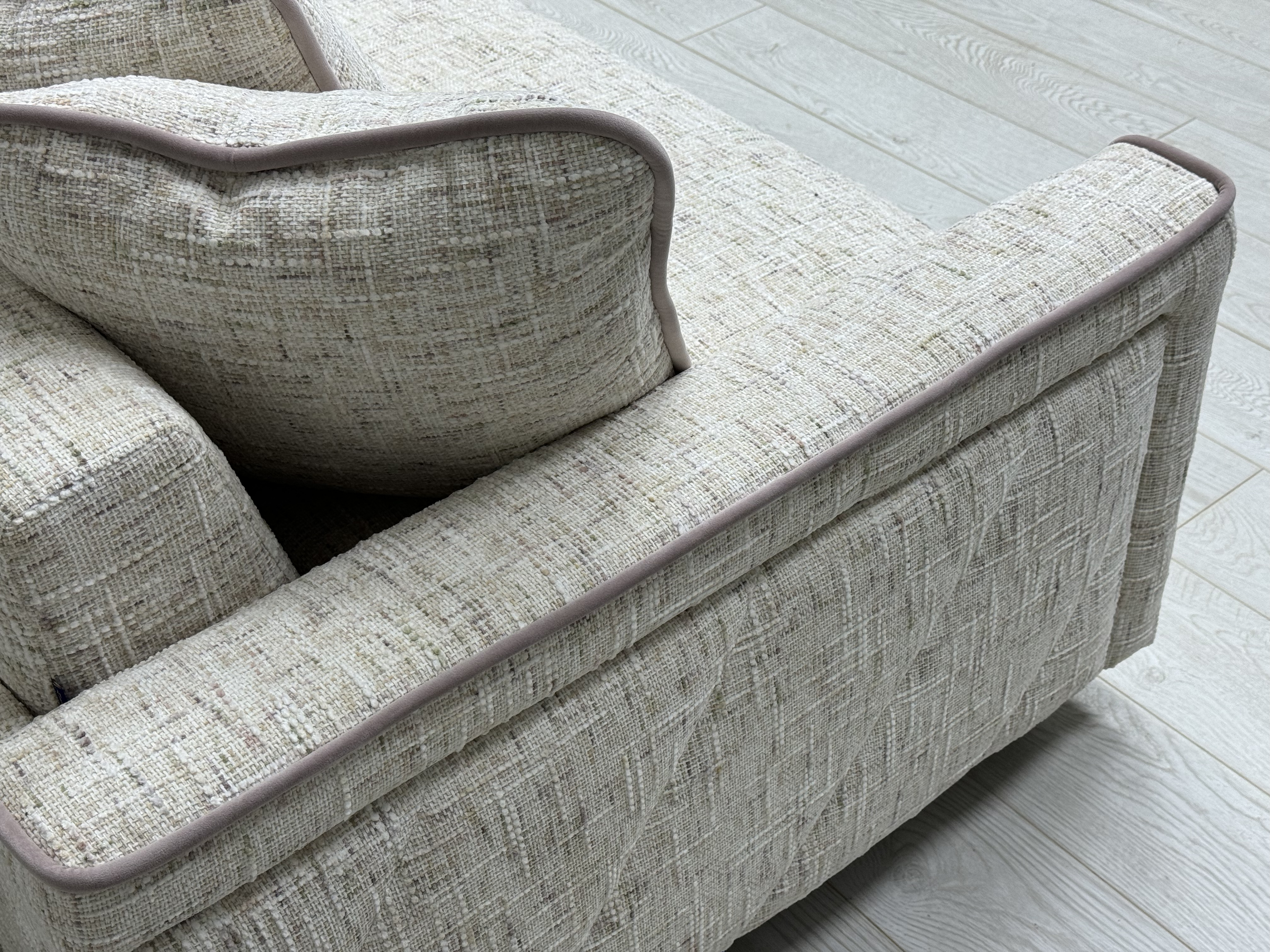 - Подлокотник с контрастным крупным кантом и диагональными втяжками подчеркивает изящность Оскара Люкс.