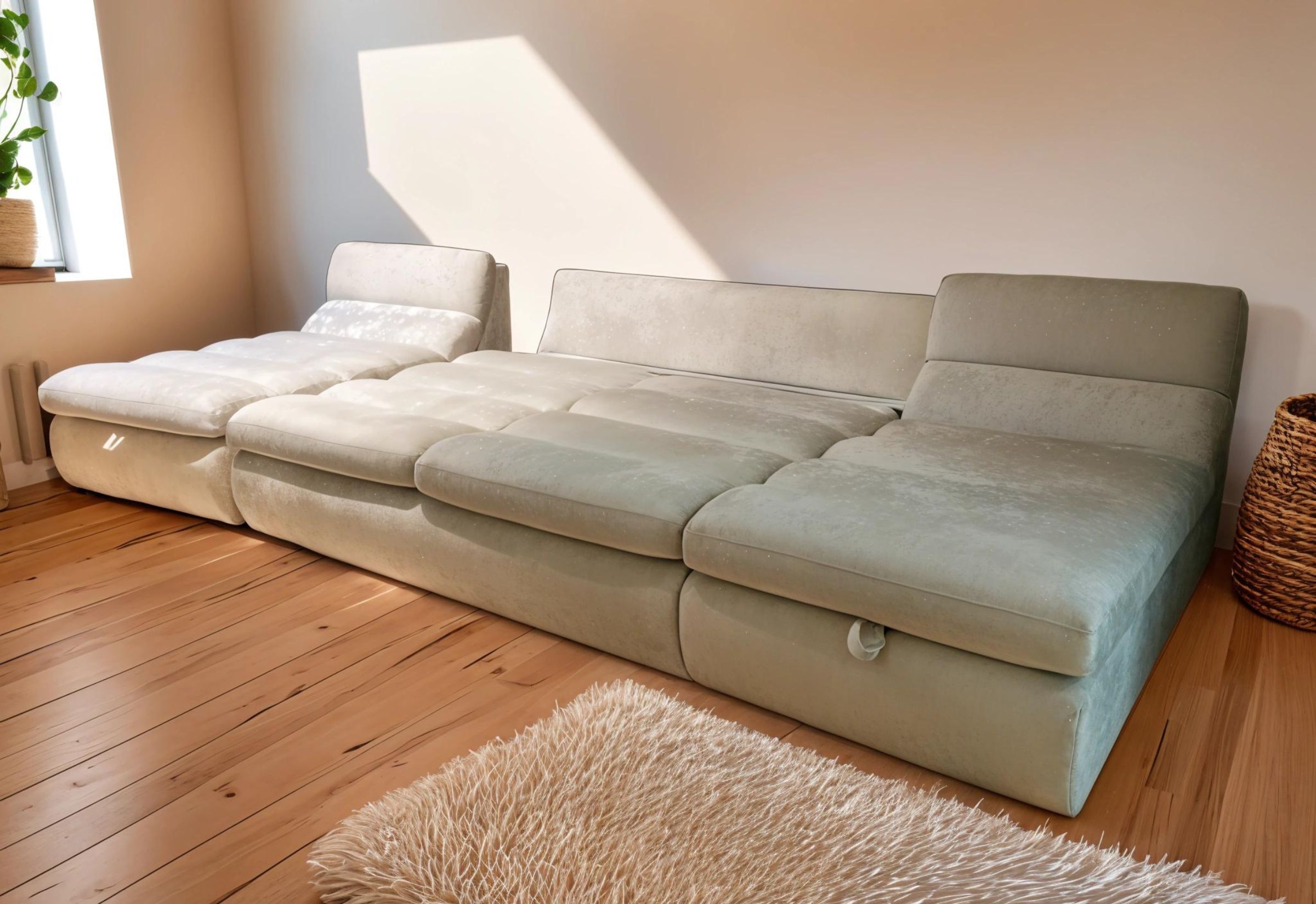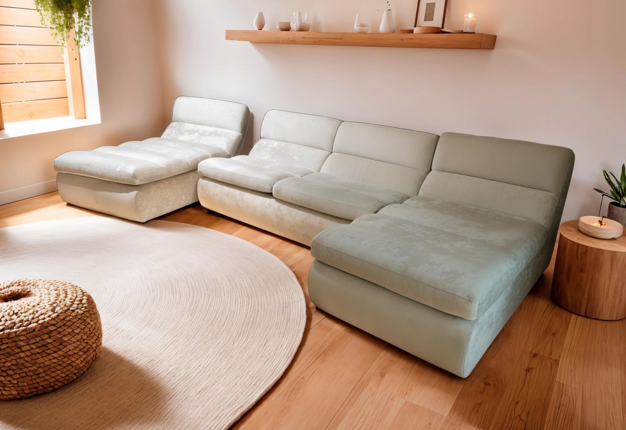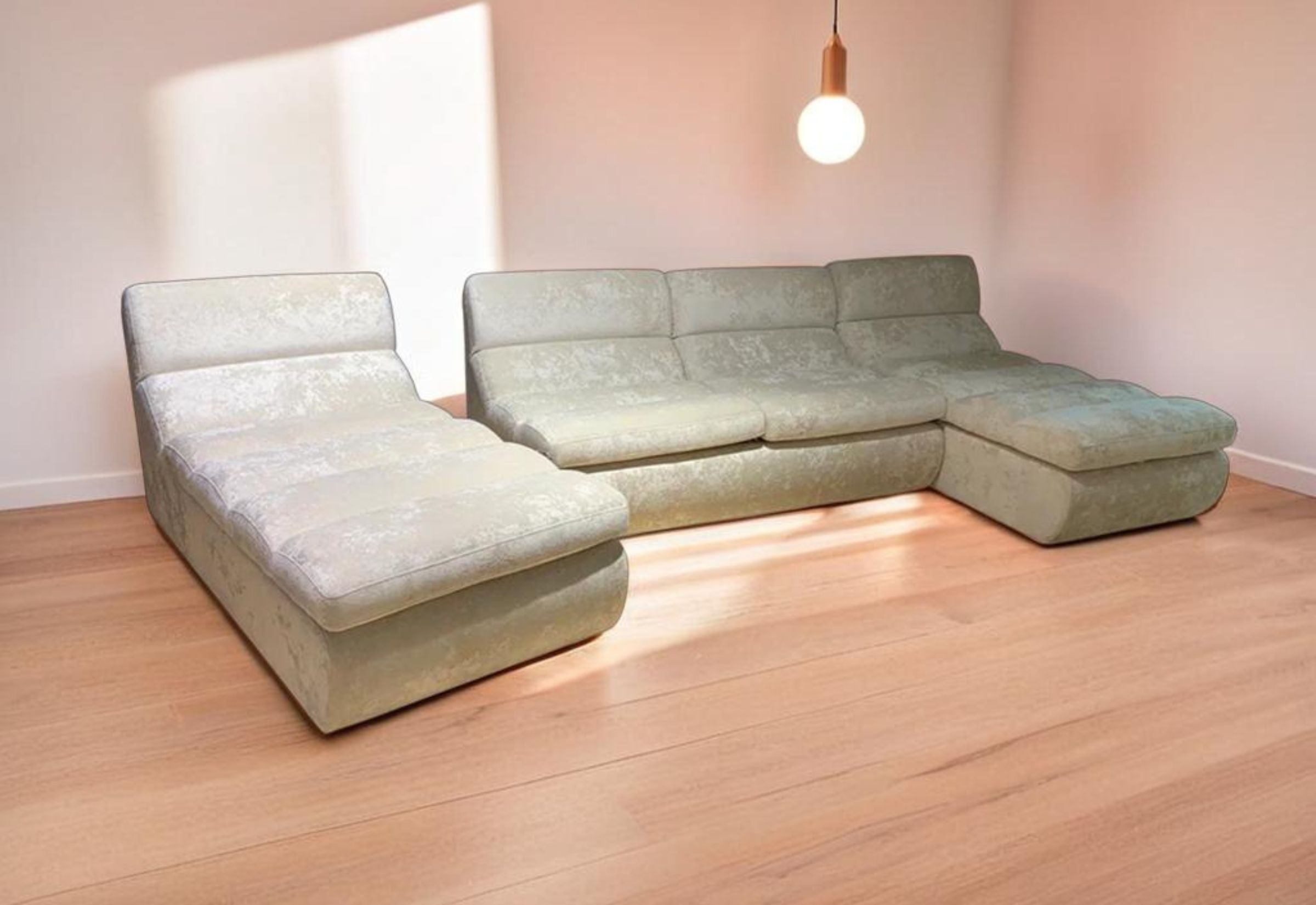 Модульный диван с индивидуальной конфигурацией для гибкой планировки.