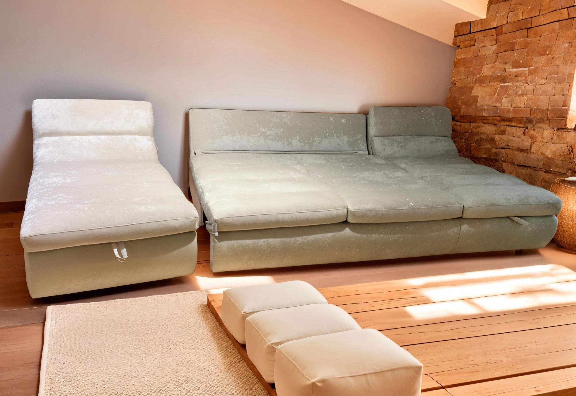 «Пума» - Приподнимите сиденье вверх и потяните на себя, затем опустите его, чтобы выдвинуть нижний блок, который поднимется и зафиксируется на уровне основного сиденья. Спинка остается неподвижной, обеспечивая стабильность. Этот механизм компактен и прочен, оснащен высококачественными стальными и деревянными компонентами для обеспечения надежности и долговечности.
