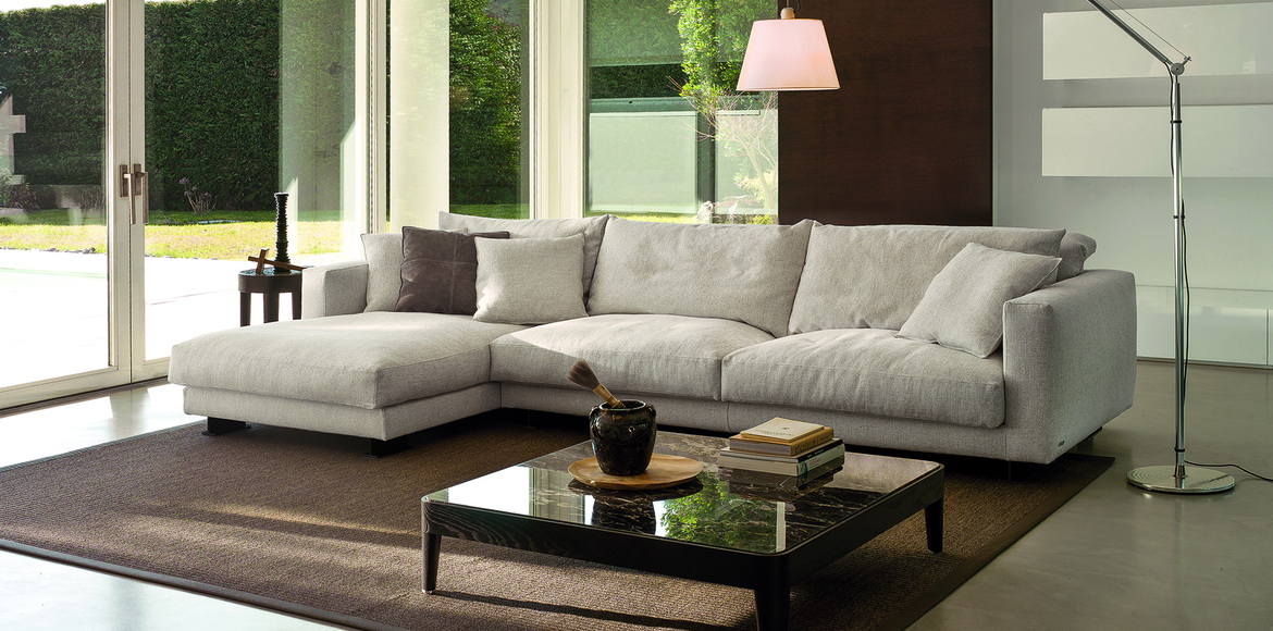код 89828Стильный угловой диван на едином ложе основания, смягченном подушками сидений и спинки.