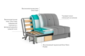 КОРОБ для белья. Располагается под секцией сиденья, воспользоваться можно когда диван разложен *особенностью механизма является то, что матрас в изголовье находится в свободном состоянии, что не позволяем сидеть в изголовье на разложенном диване, не рекомендуется опираться на матрас в изголовье, кроме как использовать как место для размещения подушки для ночного отдыха.