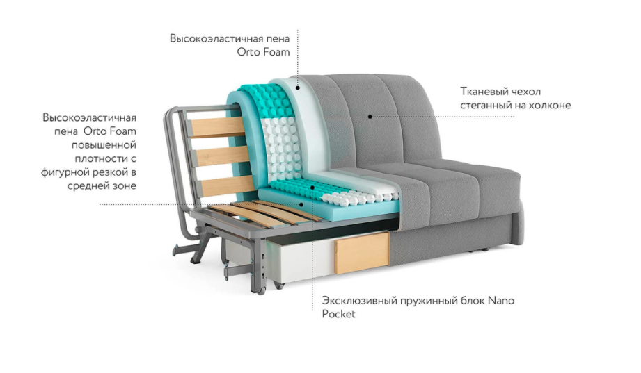 - короб для хранения постельных принадлежностей, располагается под секцией сиденья.