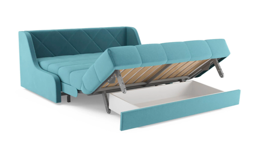 КОРОБ для белья. Располагается под секцией сиденья, воспользоваться можно когда диван разложен *особенностью механизма является то, что матрас в изголовье находится в свободном состоянии, что не позволяем сидеть в изголовье на разложенном диване, не рекомендуется опираться на матрас в изголовье, кроме как использовать как место для размещения подушки для ночного отдыха.