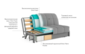 В основе дивана – высокий матрас, уникальный для такого вида трансформации. 7-зональный пружинный блок NanoPocket поддерживает позвоночник в анатомически правильном положении, способствует комфортному расслаблению.