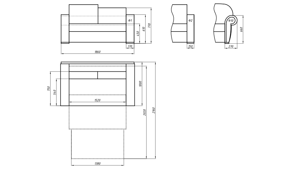 Габариты: 270х114х92 см. Механизм раскладки: нет.