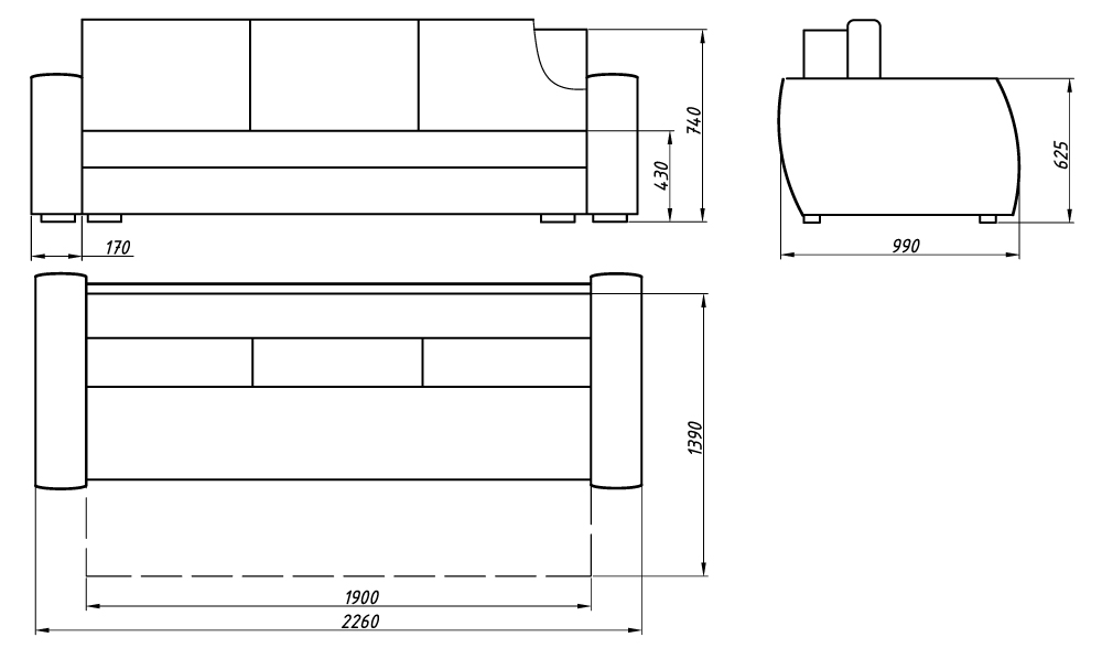 Габариты (ДхШхВ): 186х100х77 см. Пружинный блок «Боннель». Механизм: «Еврокнижка» совместно с «Дельфин»