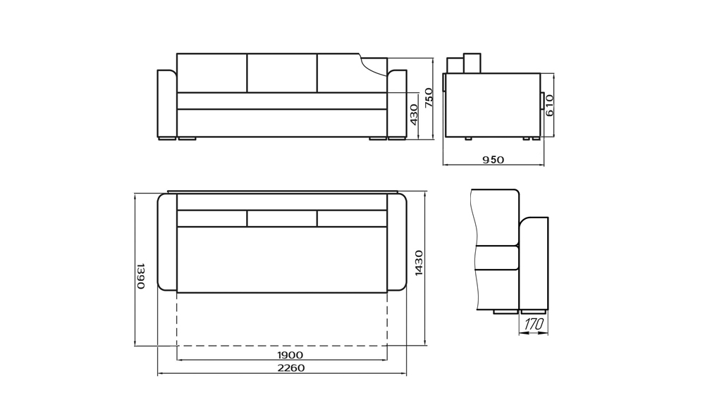Малогабаритный диван с подлокотниками и механизмом трансформации.