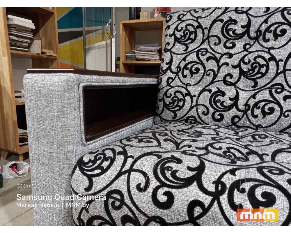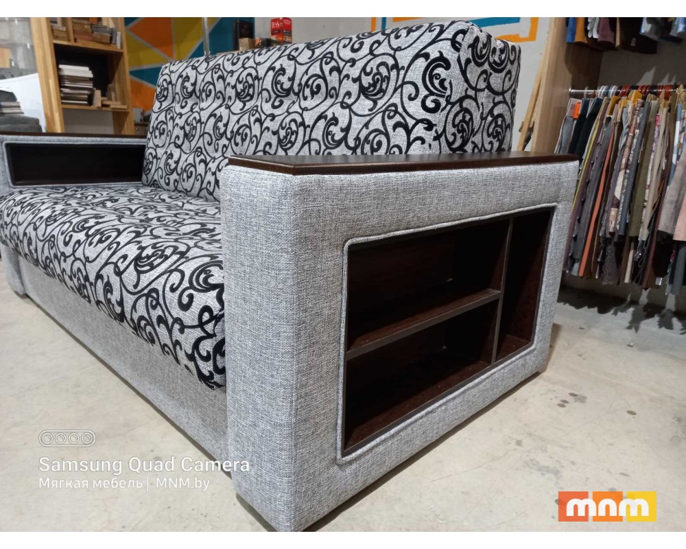 Компактный современный диван с раскладным механизмом и нишей для хранения.