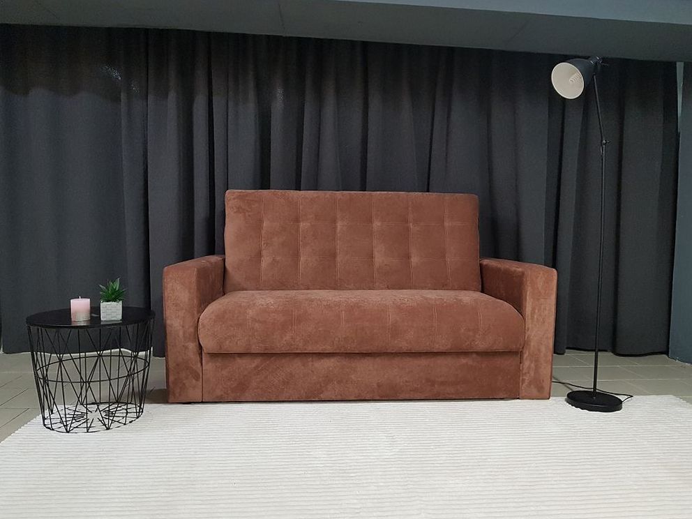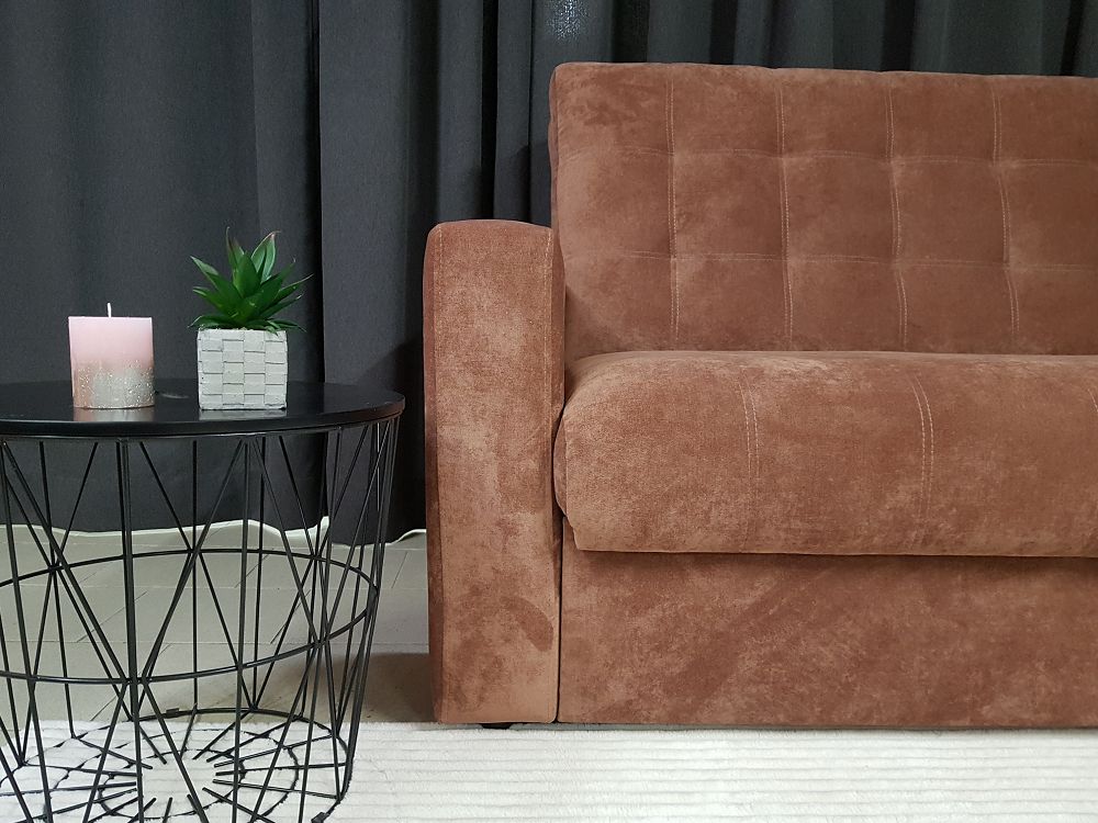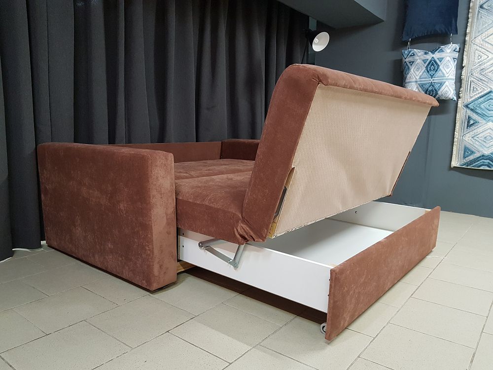 Диван оснащен механизмом раскладки и вместительным ящиком для белья.