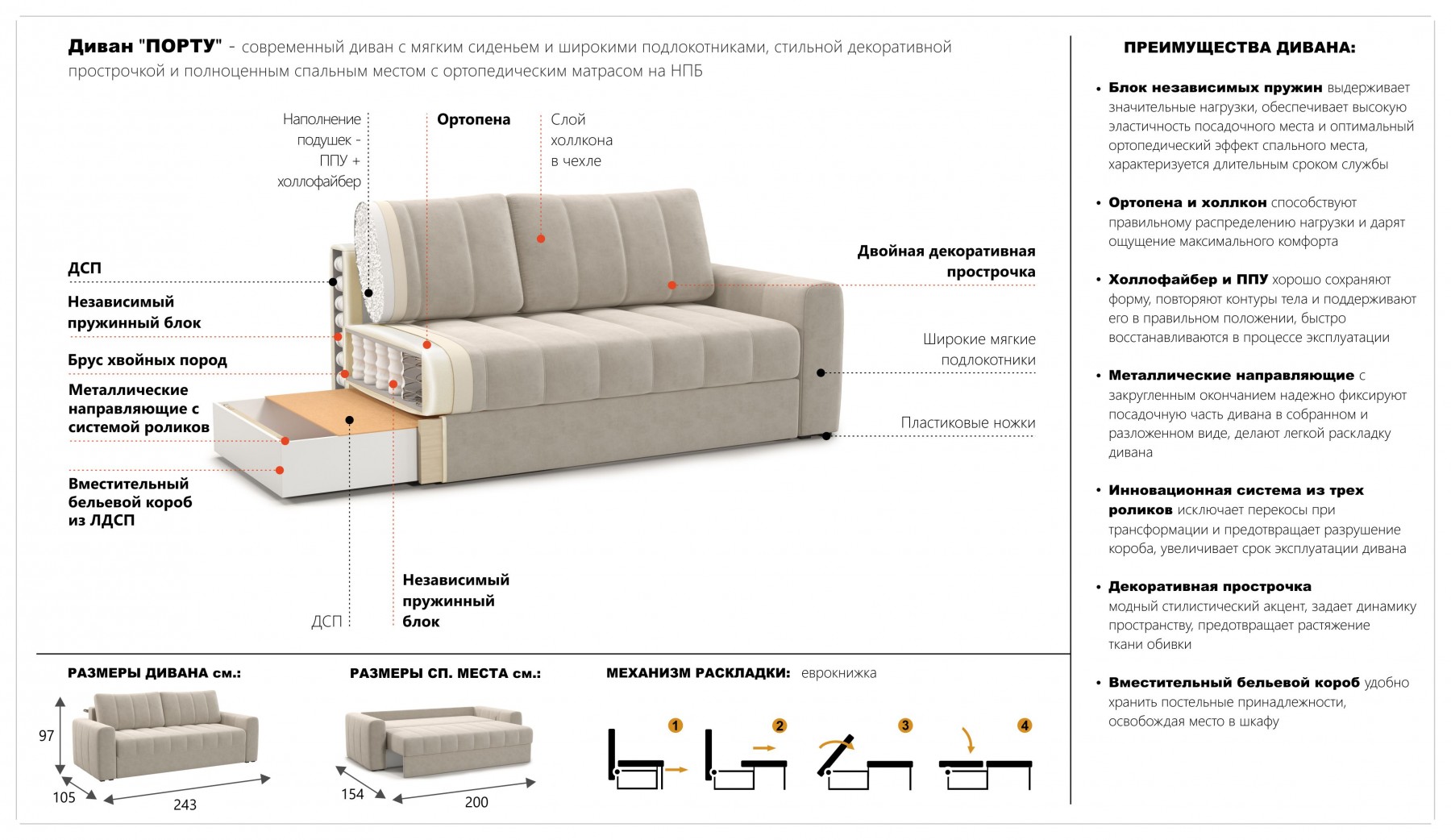 Габариты: 260х182х101 см. Механизм раскладки: Дельфин.