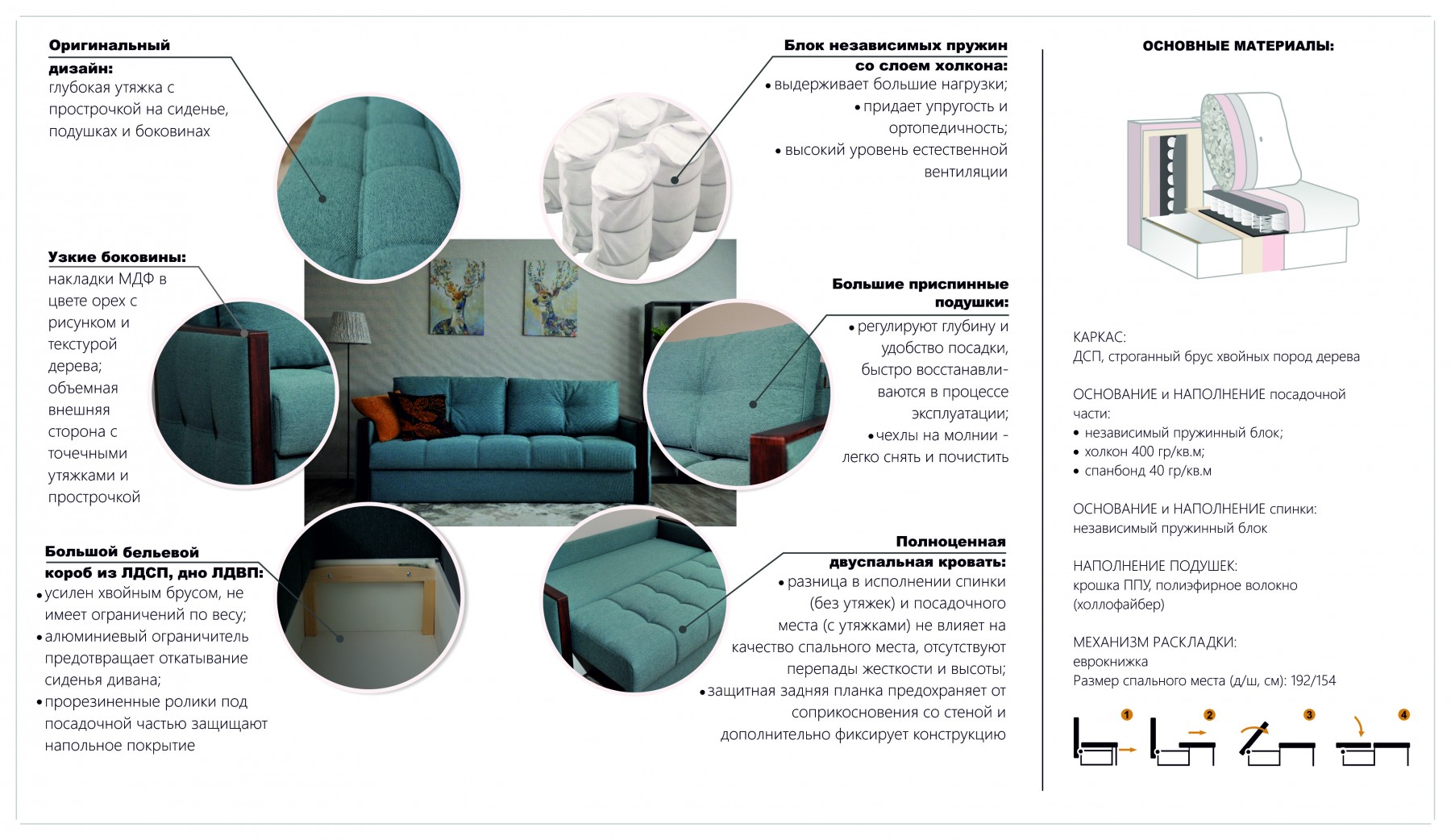 Спальное место: 1350х1950 мм. Механизм: Еврософа.
