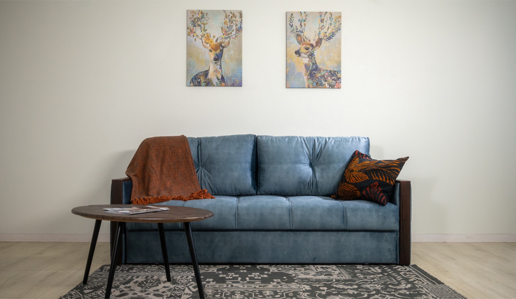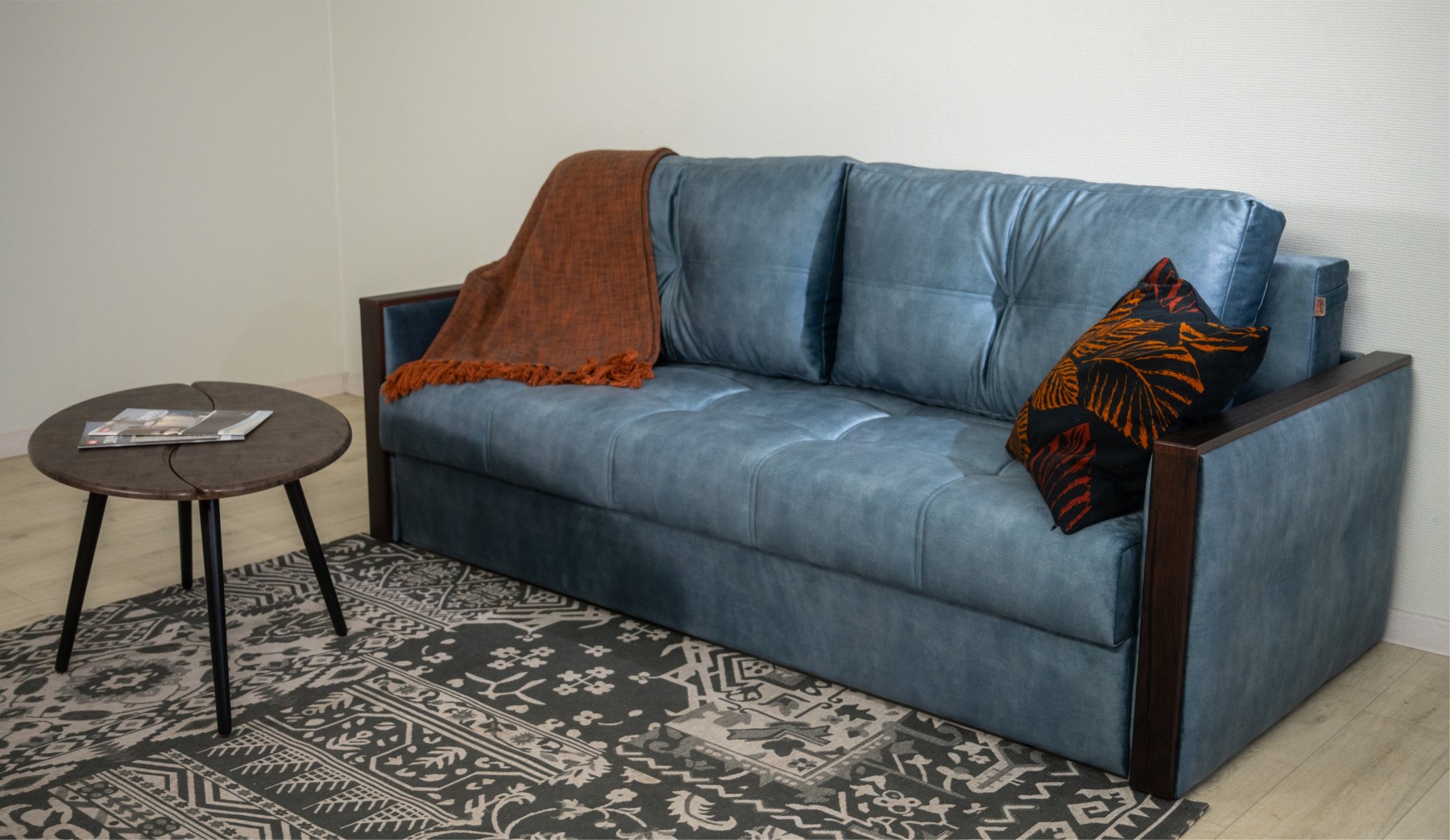 Двухместный диван с механизмом трансформации. Имеется бельевой ящик.