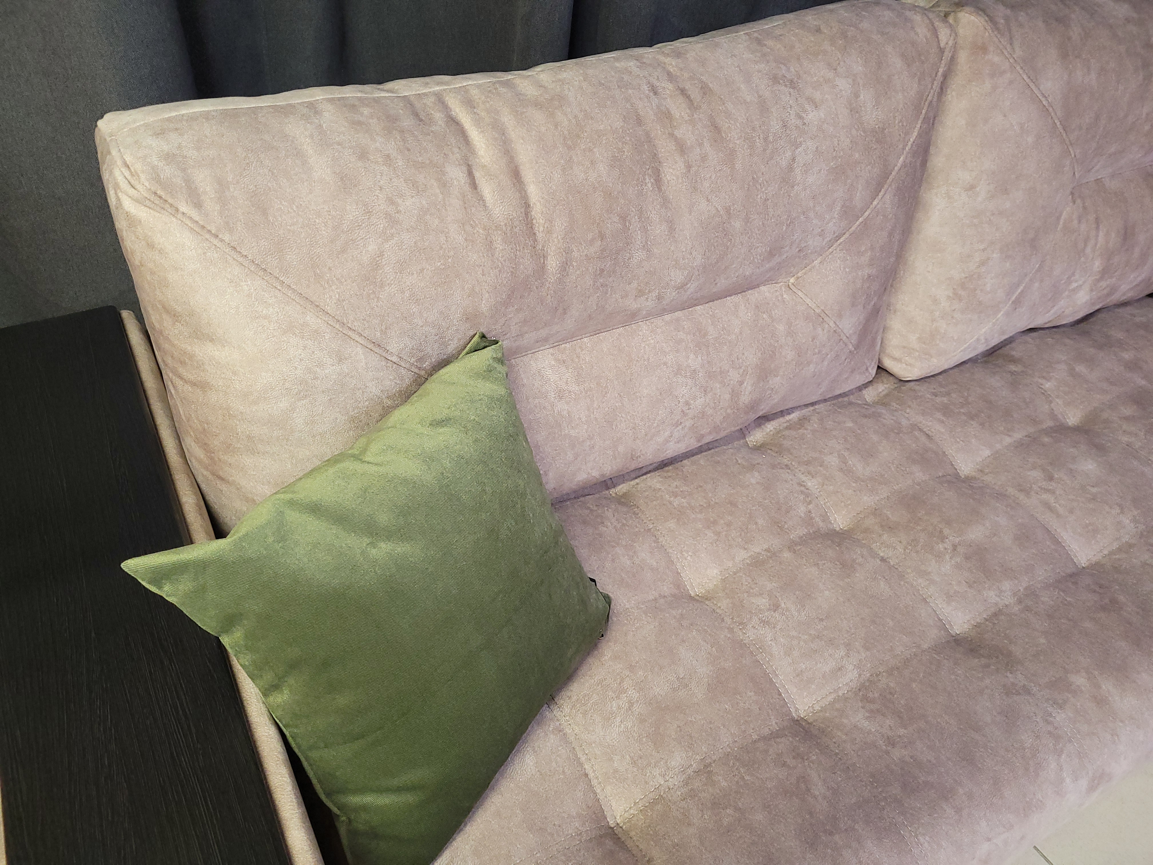 Зеленый цвет обивки. Стяжка на спинке.