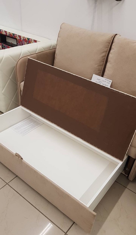Малогабаритный диванчик с бельевым ящиком. Спинка каркасная. Подлокотники обтянутые. Возможно изменение размеров.