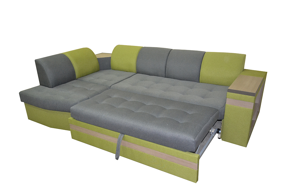 Диван «Prestige Puf» выполнен в очень приятной цветовой гамме оливкового и пастельного синего цвета, за счет чего модель прекрасно подойдет как для гостиных, так и для спальни. Модель раскладывается и образует очень вместительное и комфортное спальное место. Также сбоку подлокотника имеются небольшие открытые полочки для любимых книг и элементов декора.
