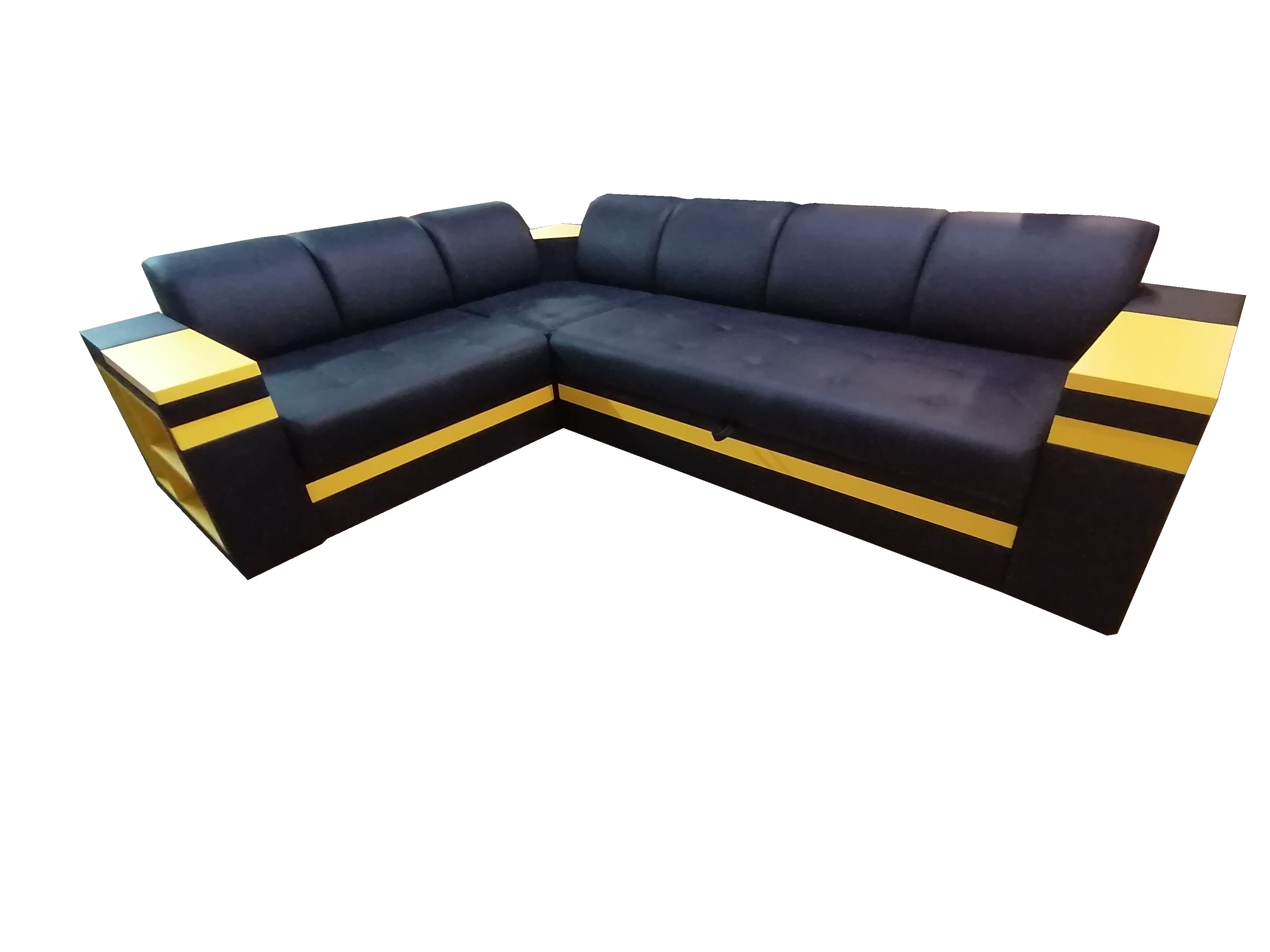 Диван «Престиж» чёрный с жёлтыми подлокотниками