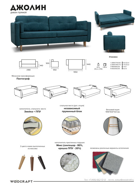 Габариты: 278х105х101 см. Механизм раскладки: Дельфин.