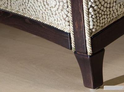 Отделка представленного образца выполнена из массива южного бука, тонированного в темно-коричневый оттенок. На обивочной ткани изображен узорный рисунок.