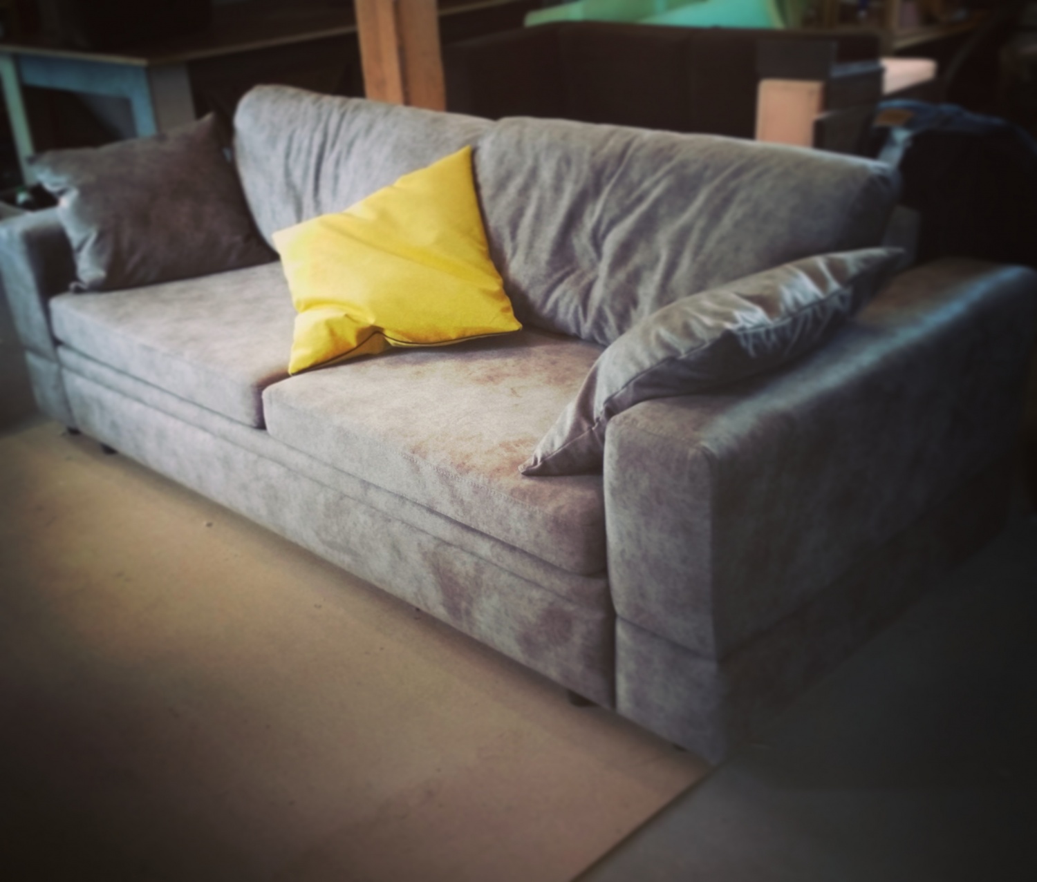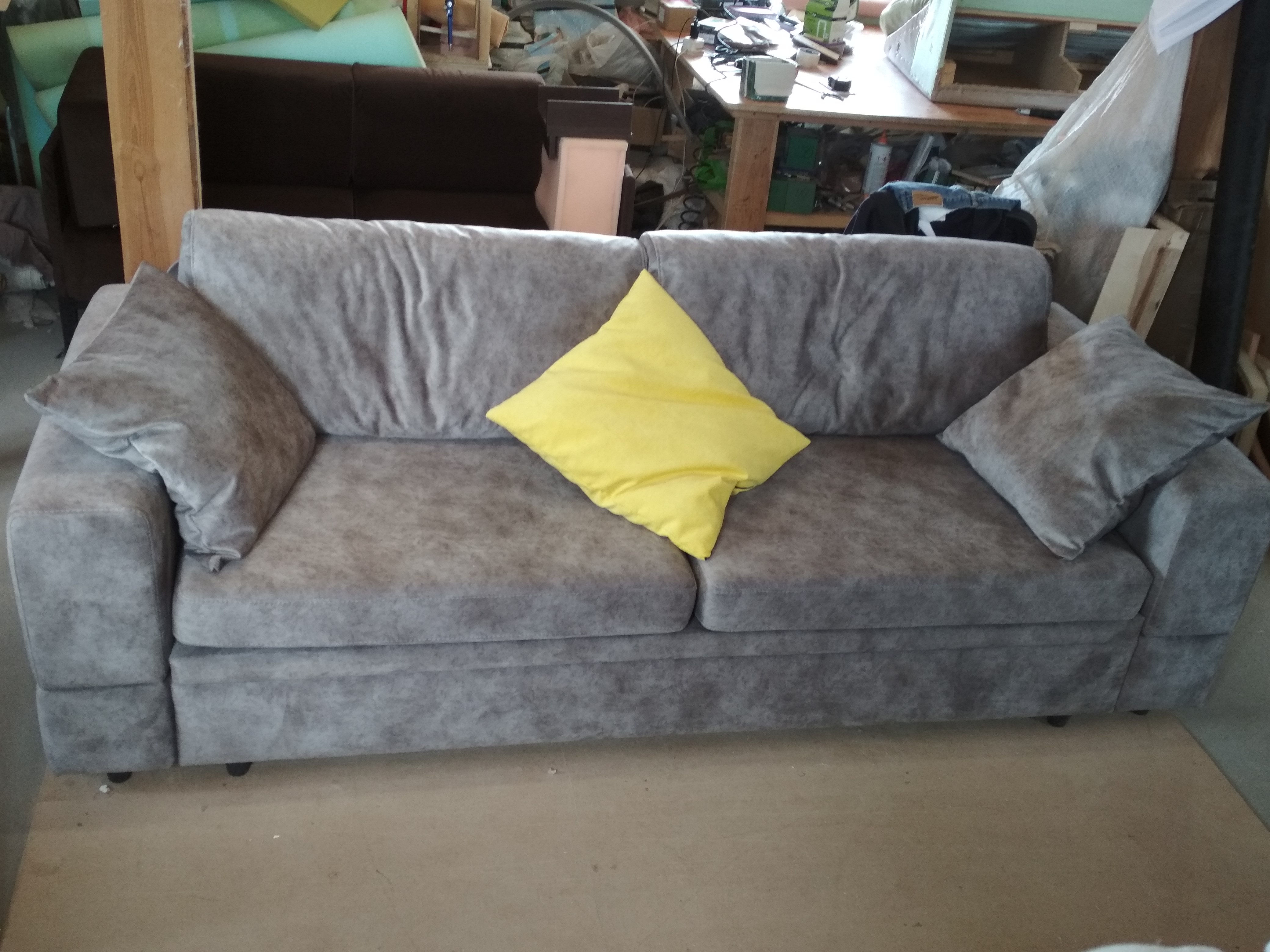 Габариты: 3850х2050 мм. Ткань: замша+ шенил. Ниша для хранения.