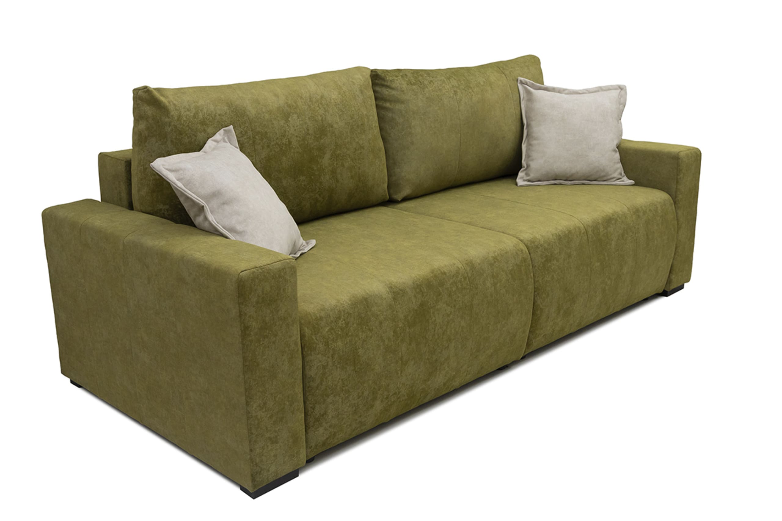 Диван Роми - универсальная мебель, которую можно использовать как диван или кровать. Он состоит из двух секций, двух боковых секций, двух больших и двух маленьких декоративных подушек. Спинка дивана на основе независимого пружинного блока + пенополиуретан. Сидение на основе независимого пружинного блока + пружинная змейка + пенополиуретан. Основание сидения и спинки - пиломатериалы хвойных пород. В каждой секции есть емкость для хранения. Так как каждая из секций раскладывается отдельно, то из прямого дивана можно получить угловой и даже П-образный диван. Механизм трансформации "тик-так" очень прост в использовании, но он прочный, надежный и имеет очень долгий срок службы. Чтобы превратить диван в кровать, достаточно потянуть переднюю часть к себе, выдвинуть сиденье и поставить механизм на пол. Затем опустить спинку.