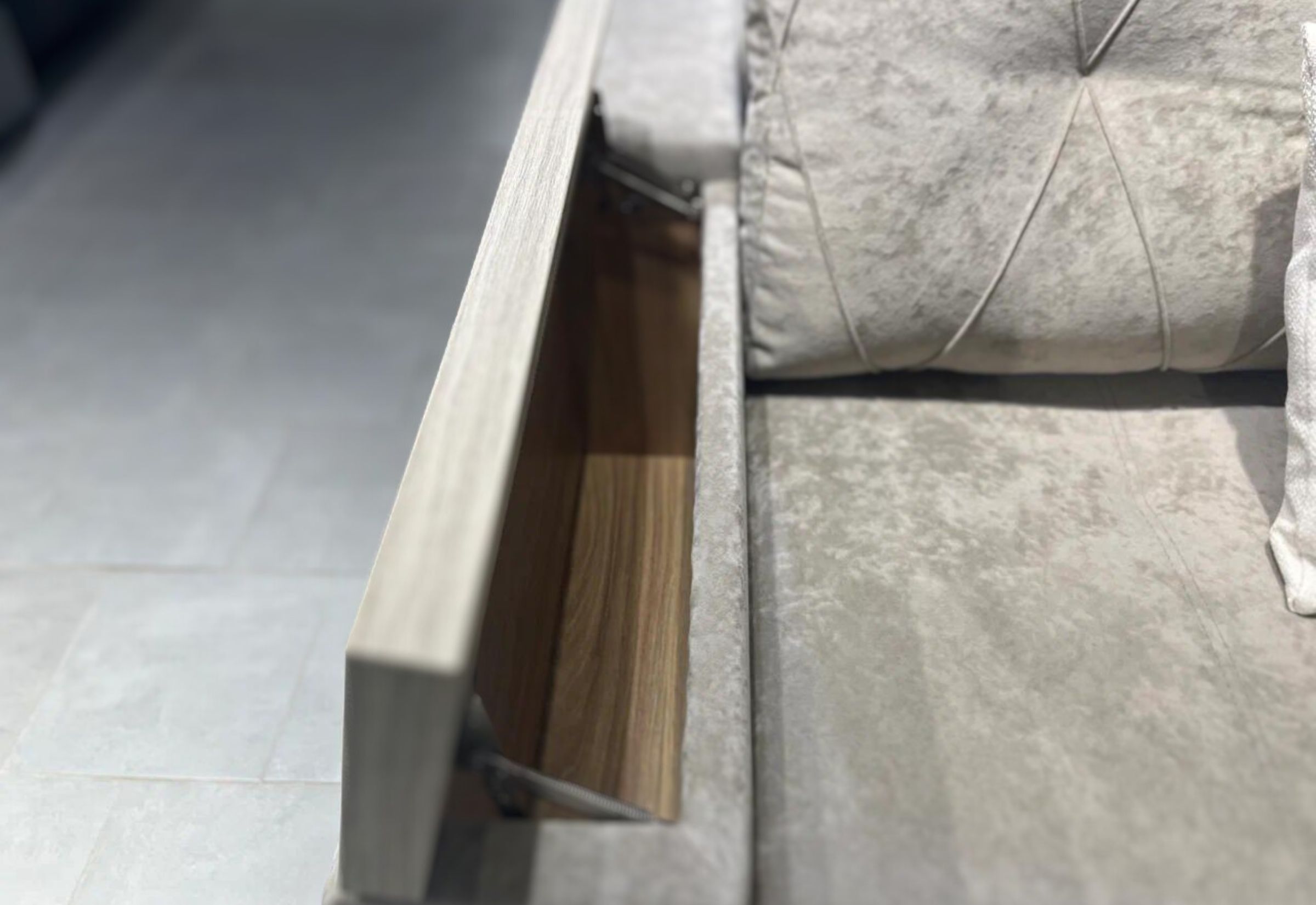 «Тик-Так» - Принцип работы прост: по первому щелчку («тик») диван раскладывается, по второму («так») — возвращается в исходное вертикальное положение. Сначала сиденье поднимается, затем перемещается вперед и, наконец, плавно опускается. В образовавшуюся нишу, которая также является ящиком для белья, укладывается спинка дивана.