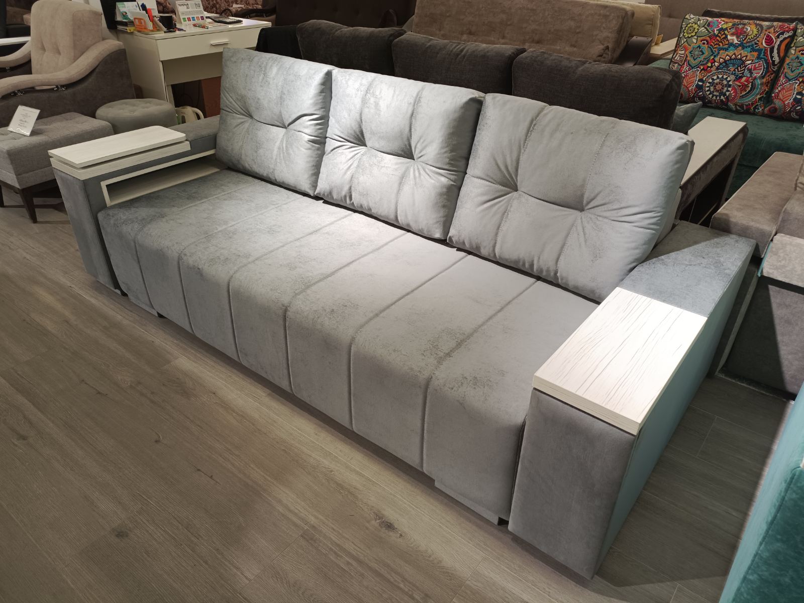 Удобный и простой механизм трансформации. Модель в светлой обивке со стяжкой.