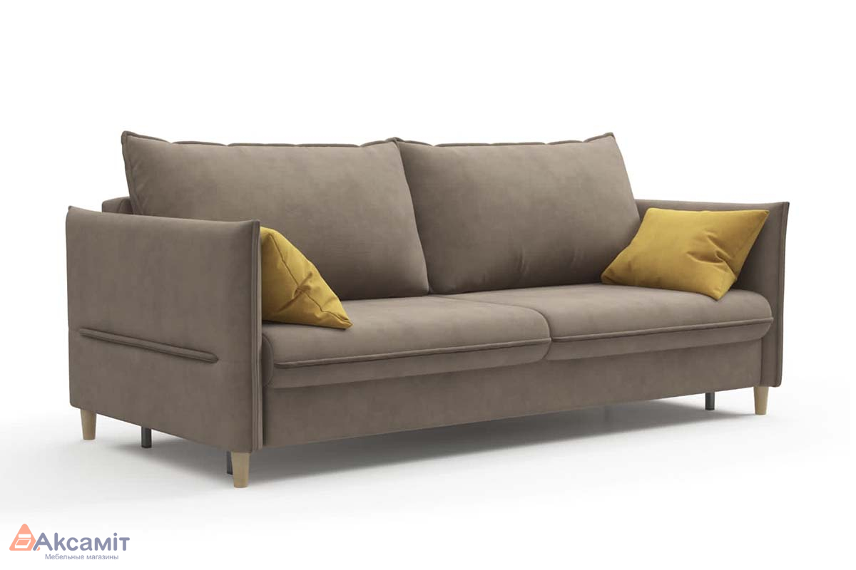 Удобный и функциональный диван светло-коричневого цвета.