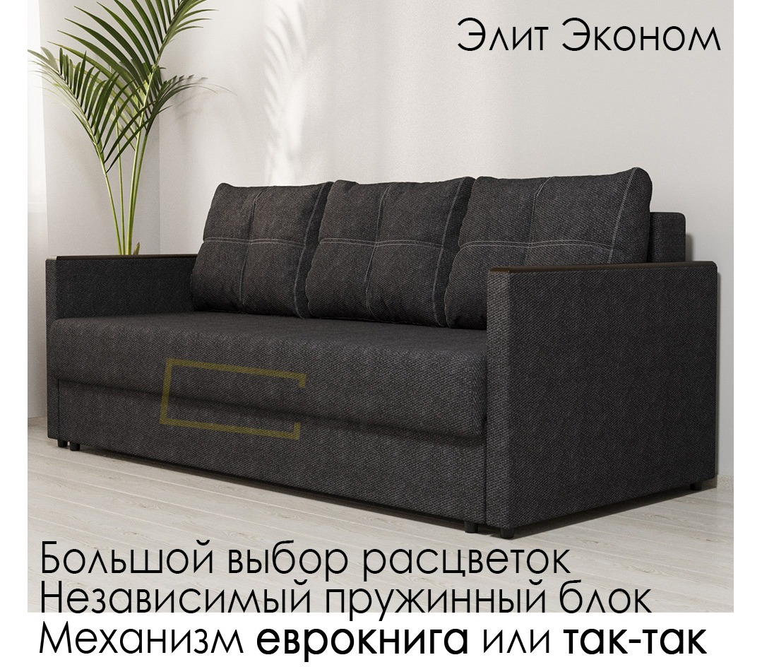 Стильный и компактный диван со спальным местом Элит Эконом. На подокотники можно что-то ставить (кружку с кофе) - это очень удобно.