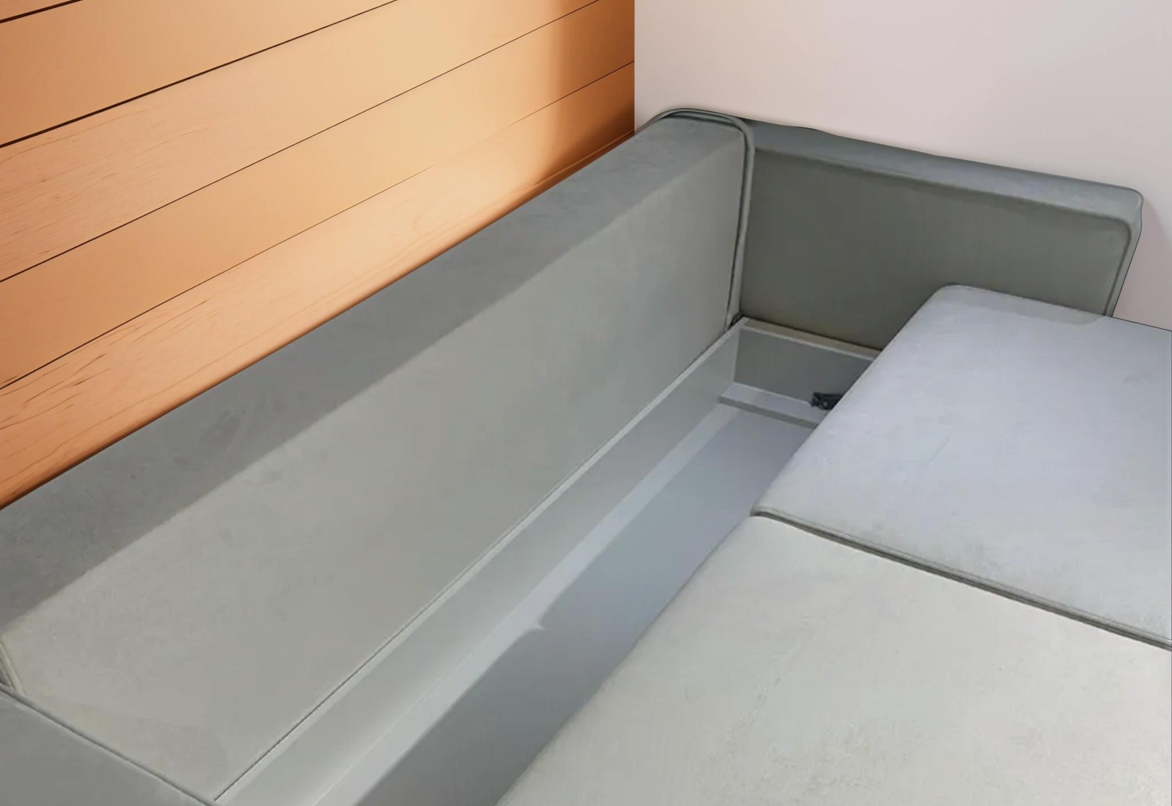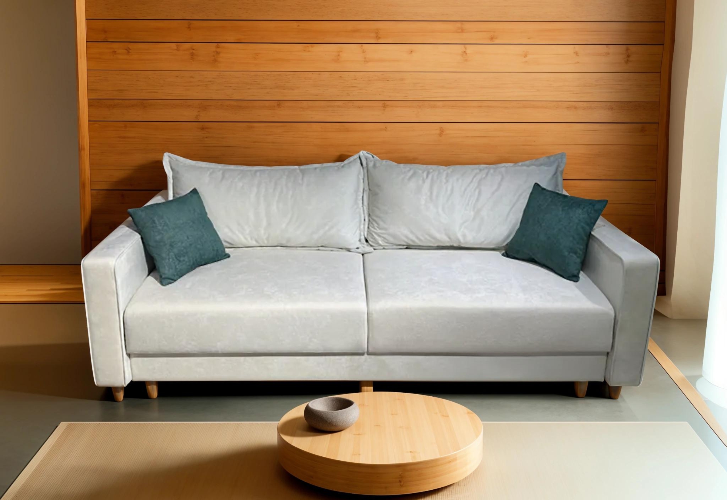 «Тик-Так» - Принцип работы прост: по первому щелчку («тик») диван раскладывается, по второму («так») — возвращается в исходное вертикальное положение. Сначала сиденье поднимается, затем перемещается вперед и, наконец, плавно опускается. В образовавшуюся нишу, которая также является ящиком для белья, укладывается спинка дивана.