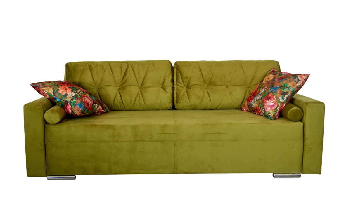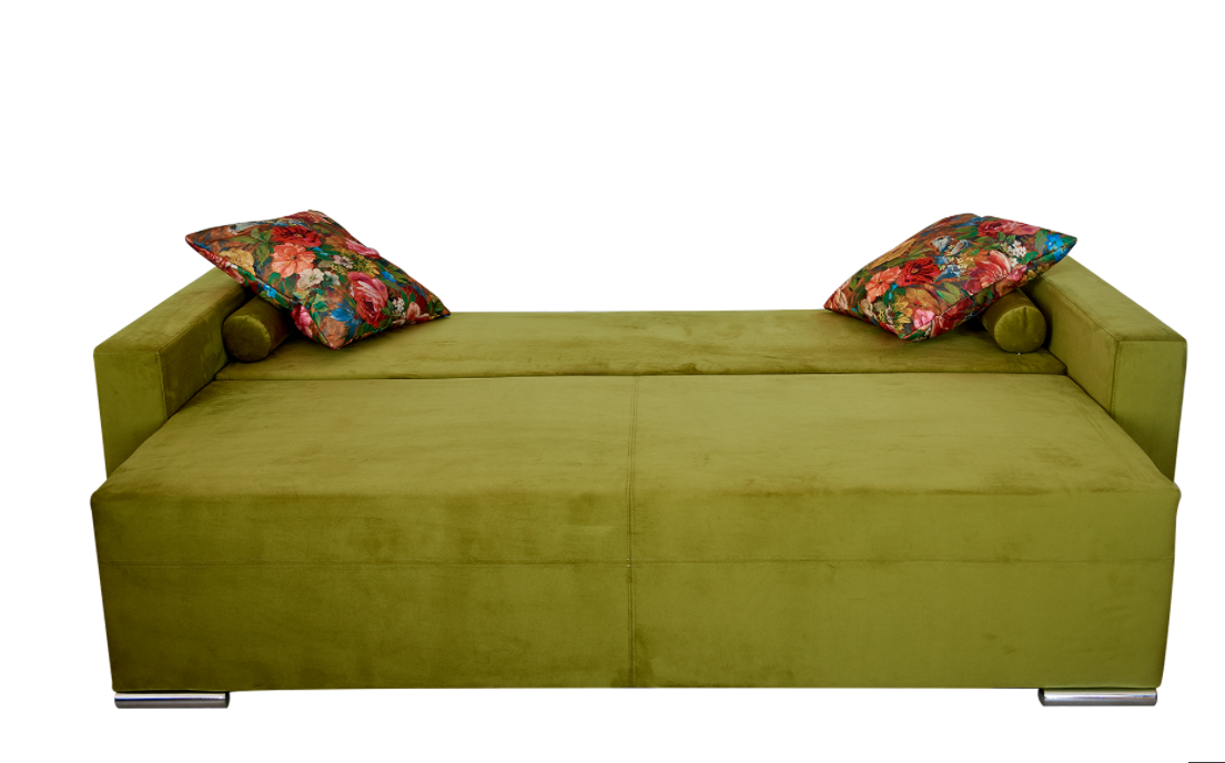 Диван-кровать с сочетанием микровелюра и атласного рисунка на обивке