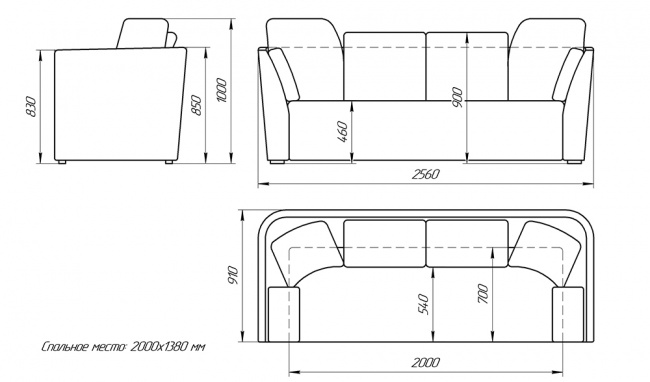 Габаритные размеры: 256 см x 91 см x 100 см.