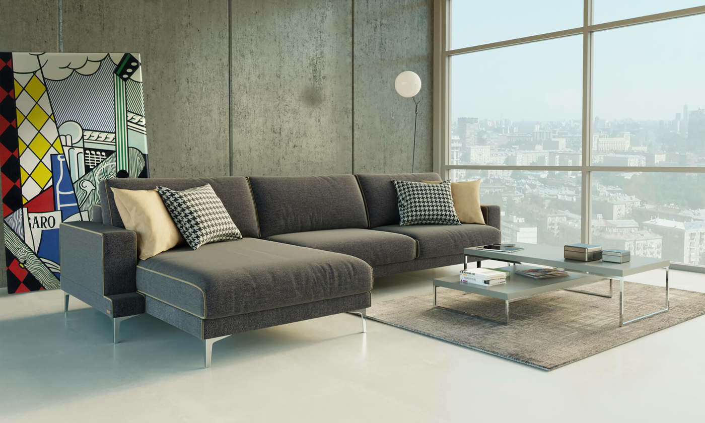 Roy – обращение к философии минимализма. Его прямые линии идеально сочитаются с хромированными опорами. Четкость форм дополнительно подчеркивает декоративный кант, который присутствует на подушках сиденья и спинки, а так же боковинах.