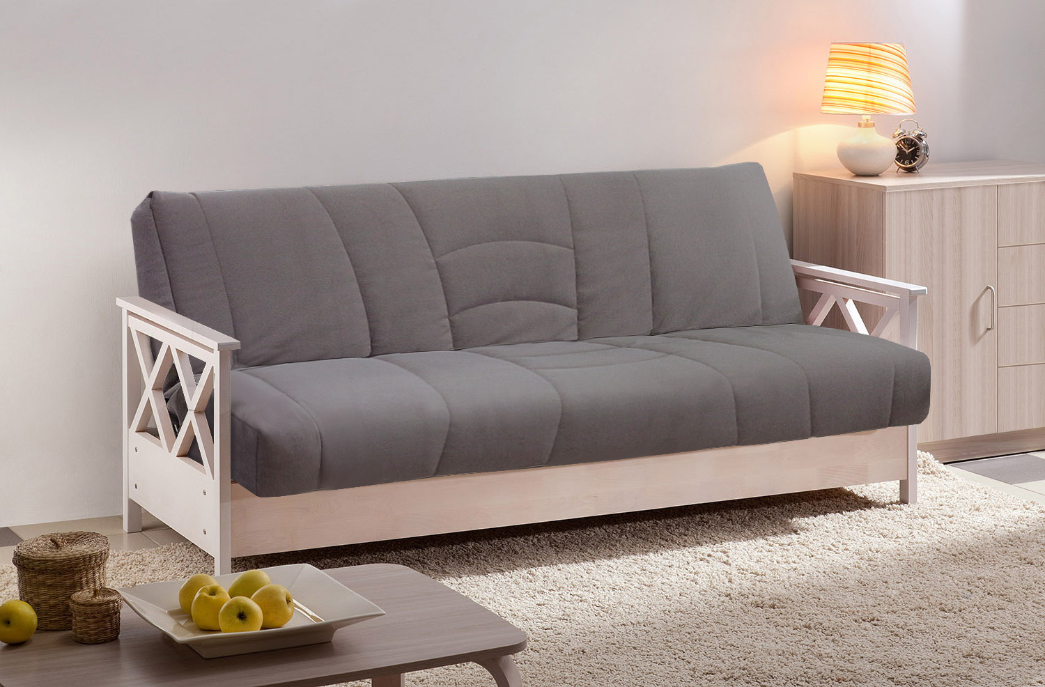 Механизм раскладки: Книжка. Несущая конструкция: Массив сосны. Бельевой ящик.