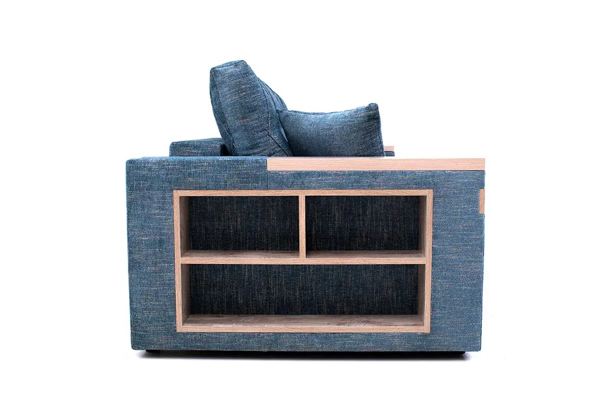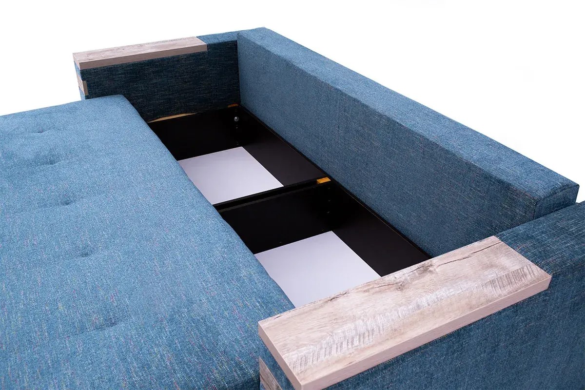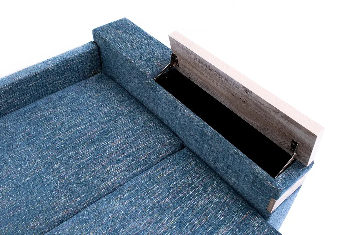 - Изделие и спинка на основе независимого пружинного блока. Имеется емкость для постельных принадлежностей. В одной из боковин располагается декоративная полочка. В другой боковине – минибар, который открывается при помощи верхней декоративной накладки.