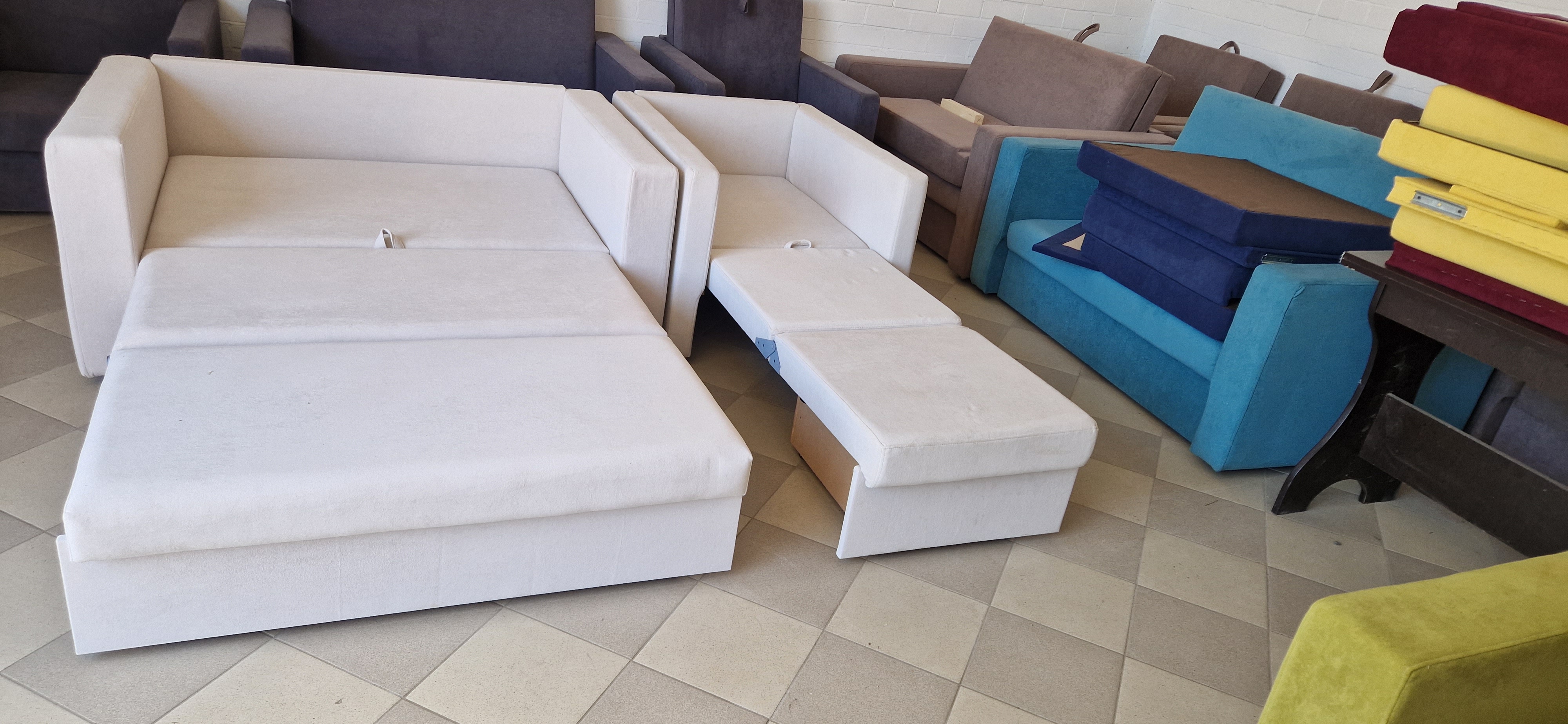 Габариты (ШхГхВ): 252х97х95 см (можно изменить). Обивка: ткань, экокожа, натуральная кожа. Более 1000 вариантов цвета.