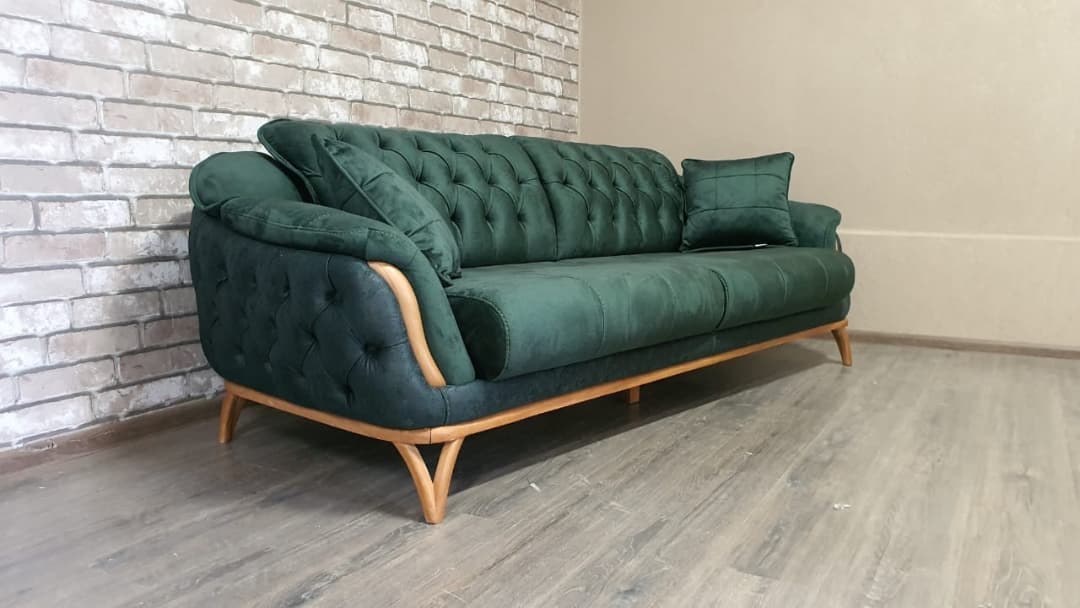 Компактный раскладной диван-«еврокнижка» с пенополеуретановым наполнителем.