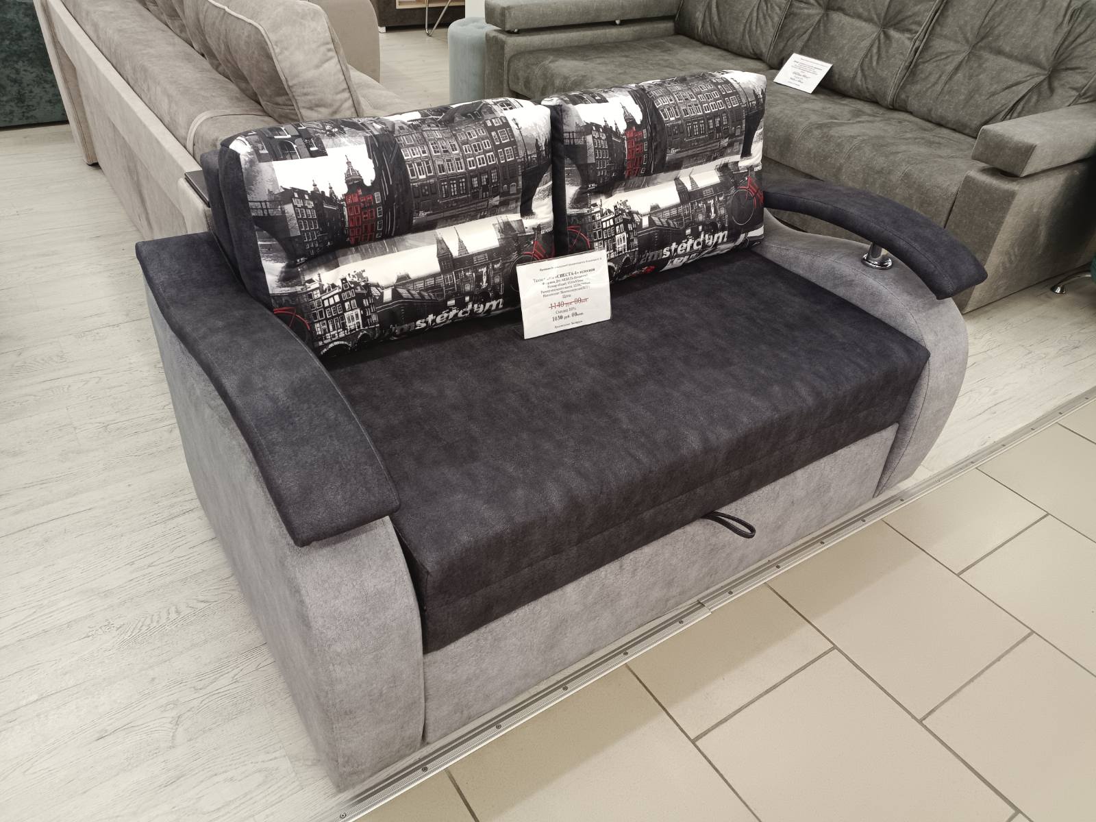Диван с подушками «Амстердам» Город серый